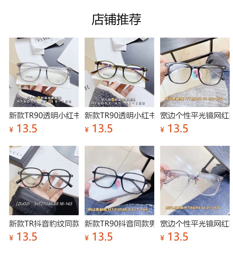 透明柳丁平光镜淘宝同款8682电脑护目镜学生帅气tr90近视眼镜框