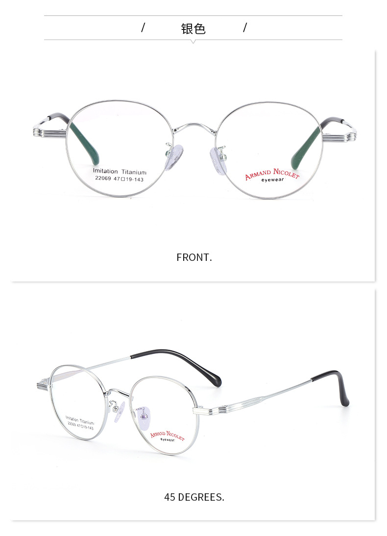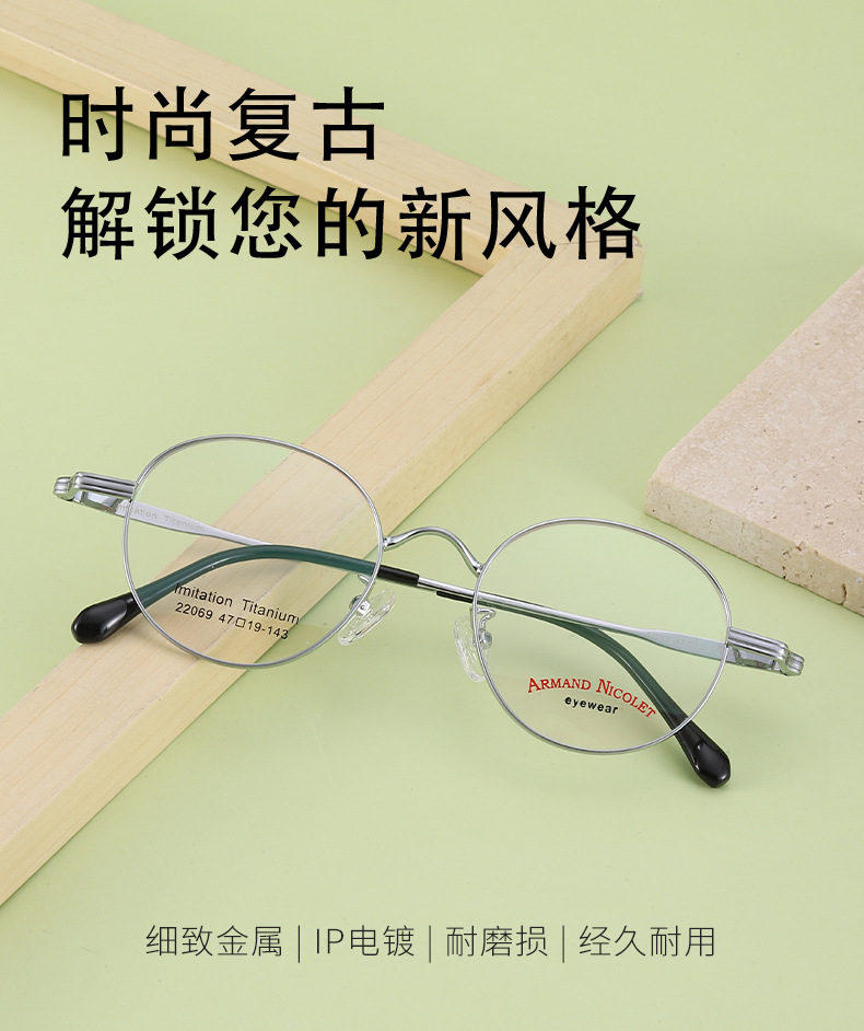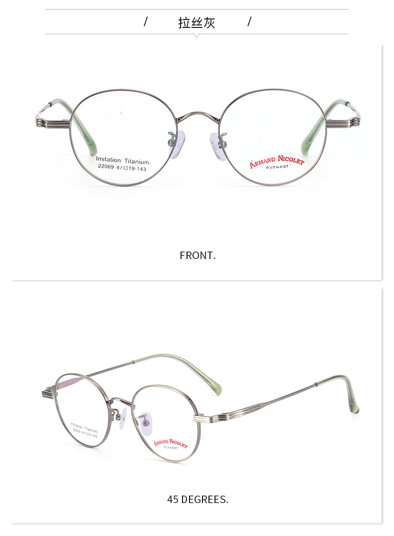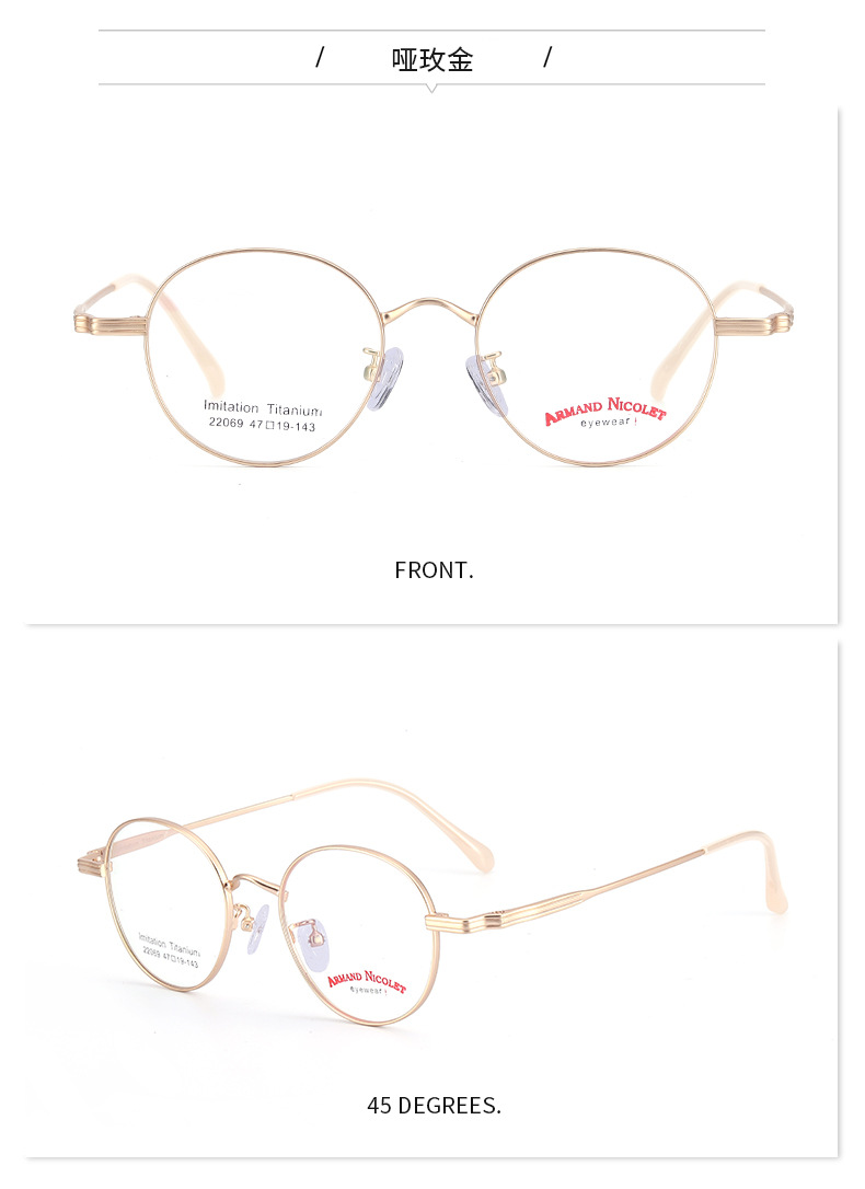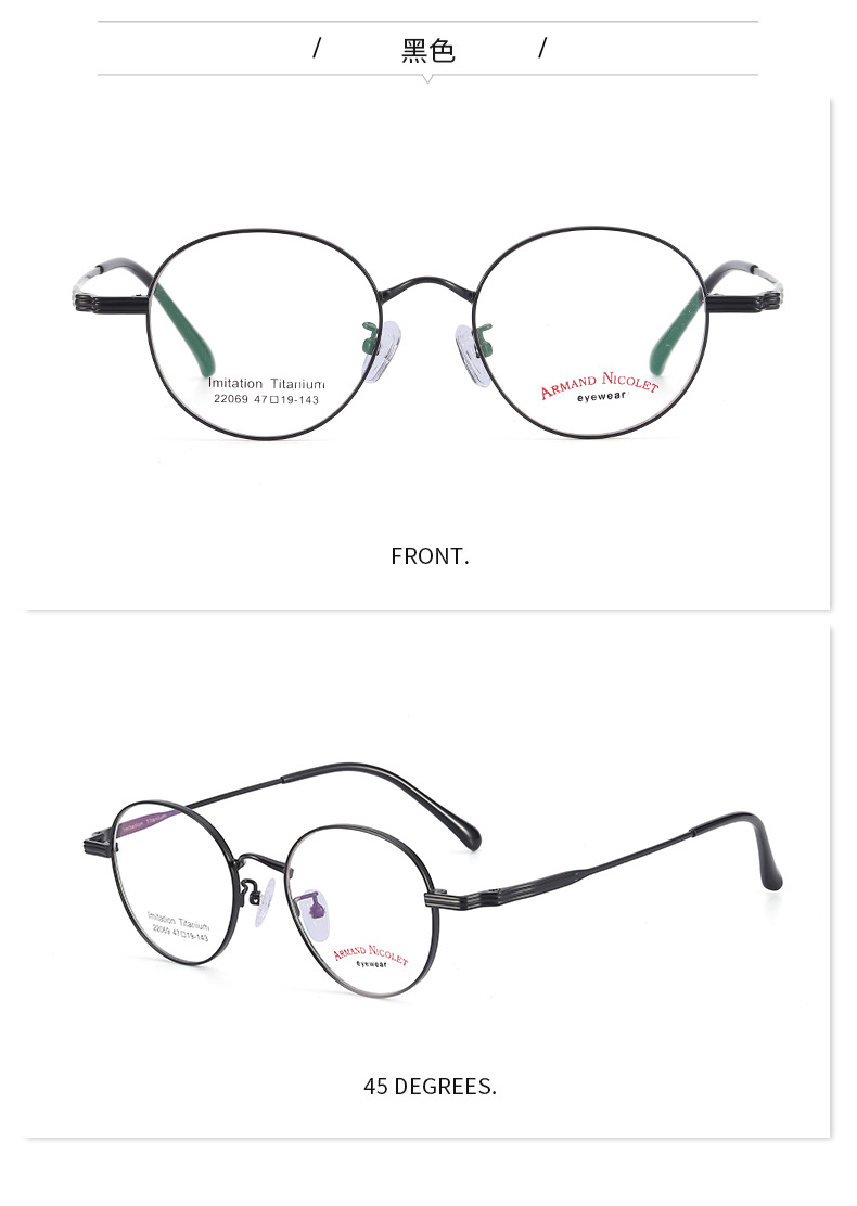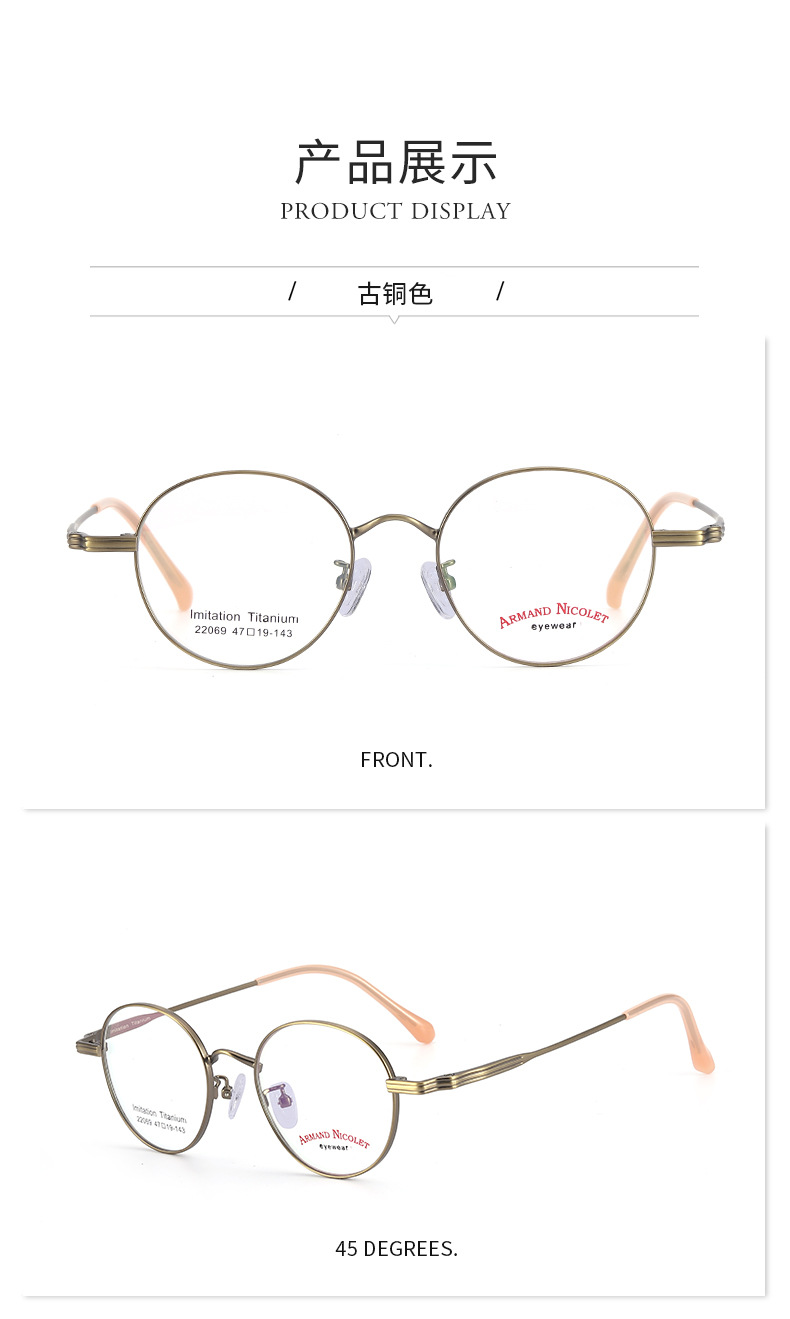 万年龟形状复古眼镜框 平光镜22069双色韩版日系圆框眼镜 配高度