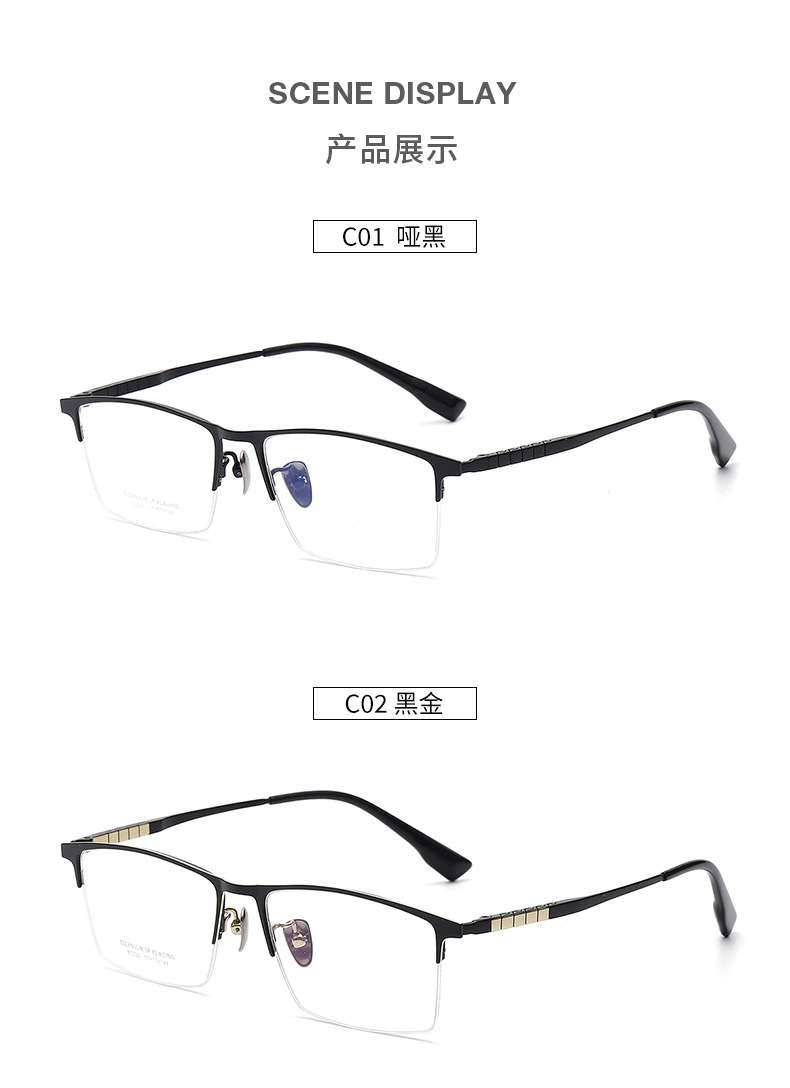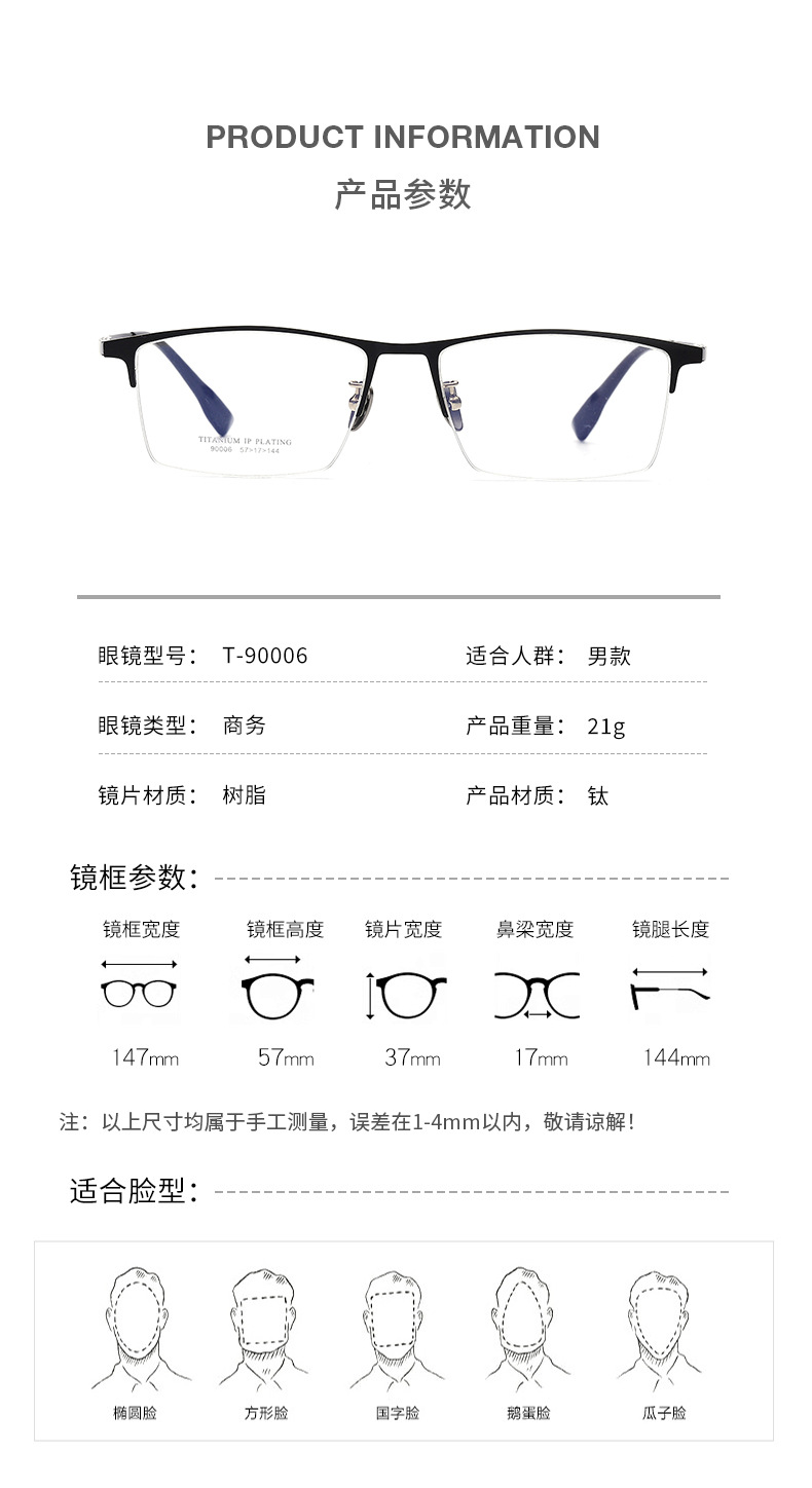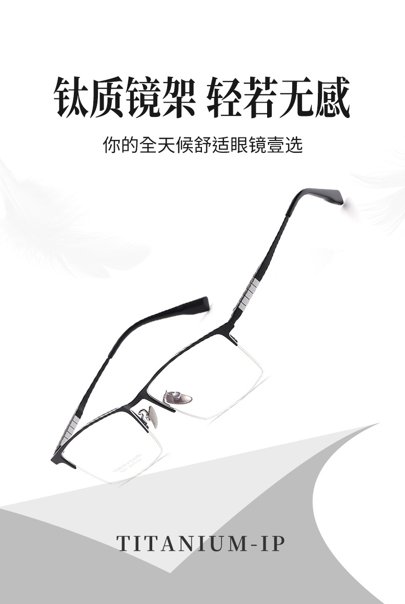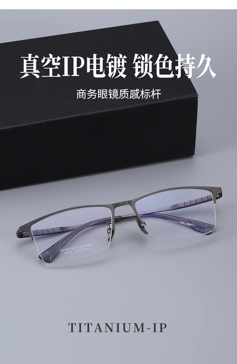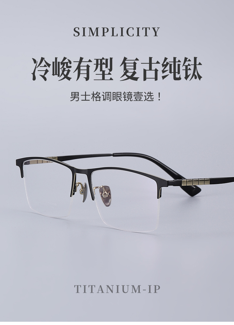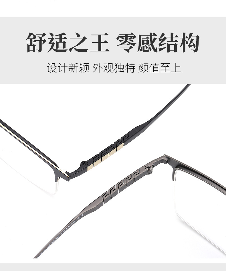 丹阳半框眼镜男近视眉毛方框眼镜90006时尚通勤超轻钛大脸眼镜框