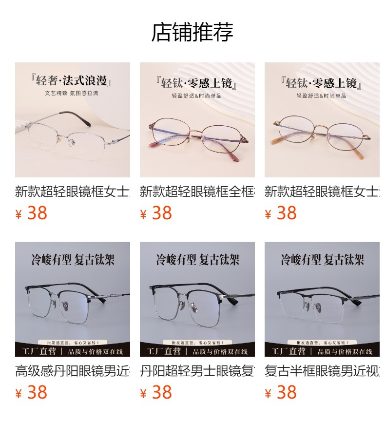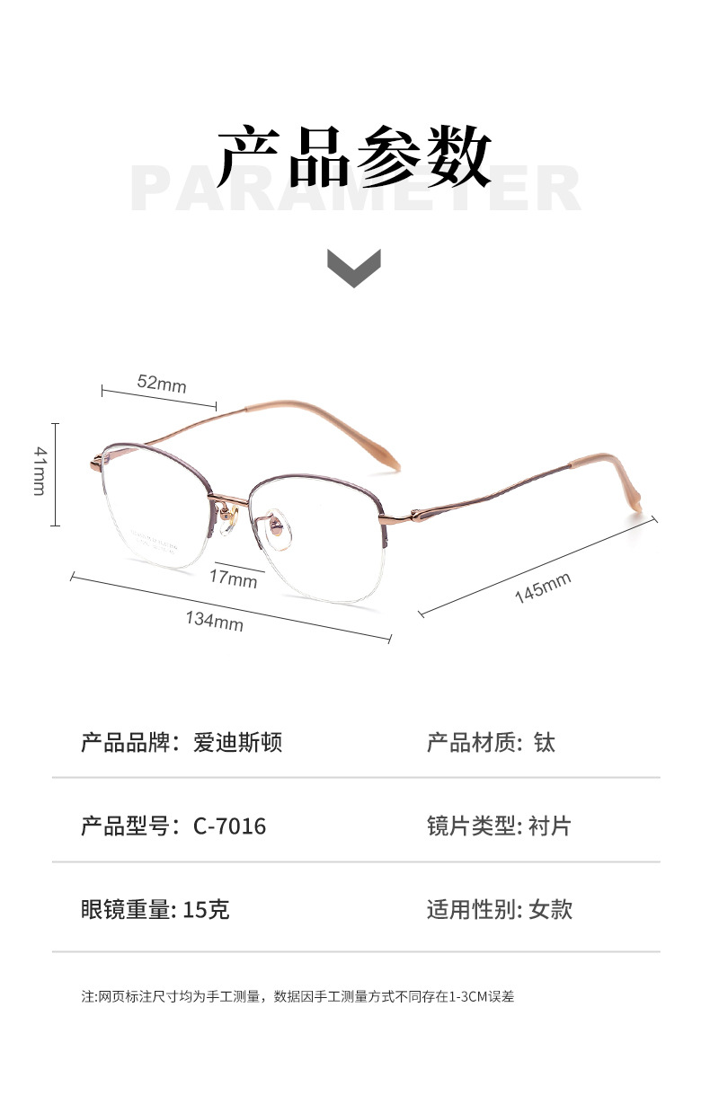 新款超轻眼镜框商务眼镜架钛全框7016丹阳多边形素颜近视眼镜女