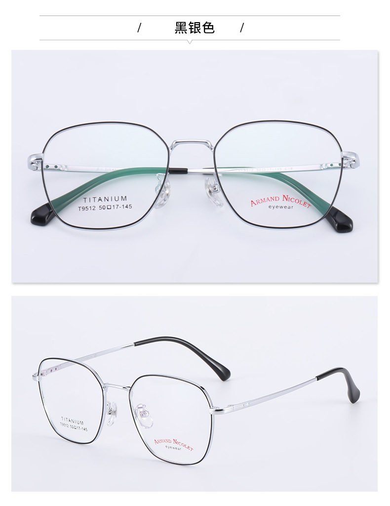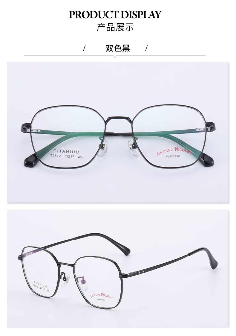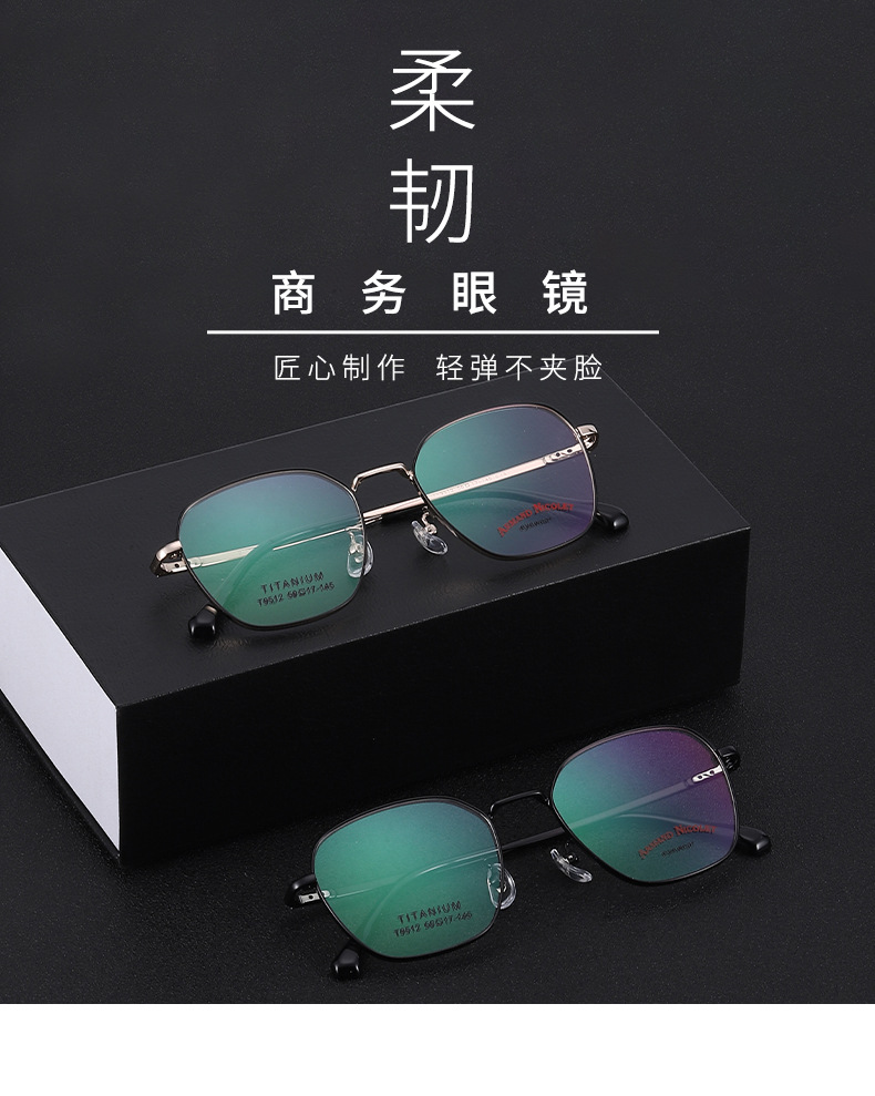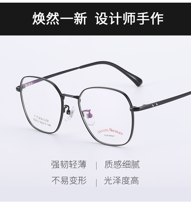 素颜大框眼镜配镜丹阳超轻眼镜框女高级感9512多边形纯钛眼镜男