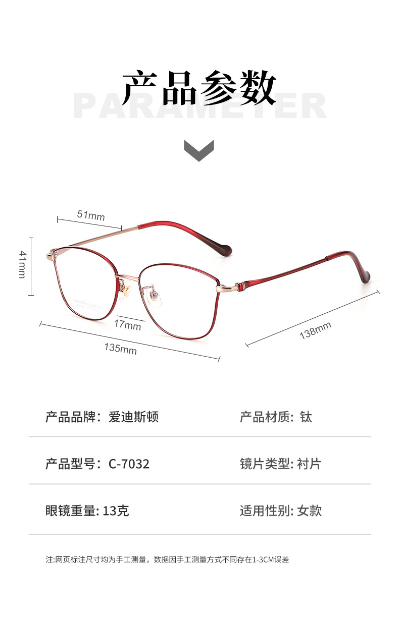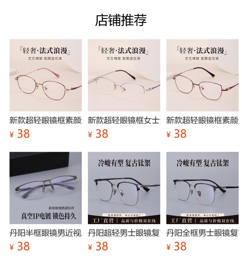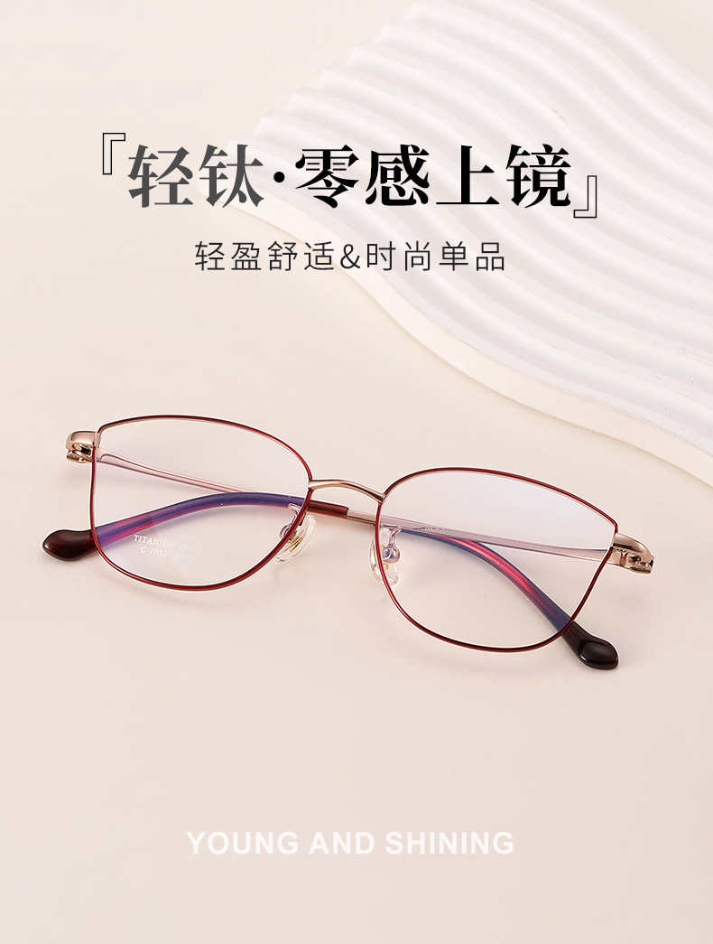 新款超轻眼镜框丹阳眼镜近视女全框批发7032多边时尚纯钛框架眼镜