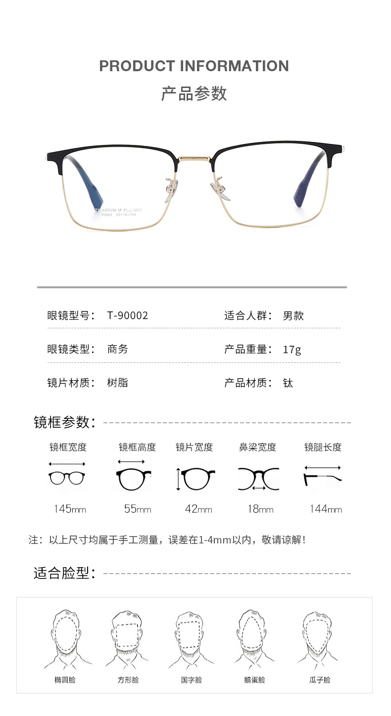 超轻丹阳眼镜男近视镜框90002复古大脸方框眼镜时尚纯钛框架眼镜