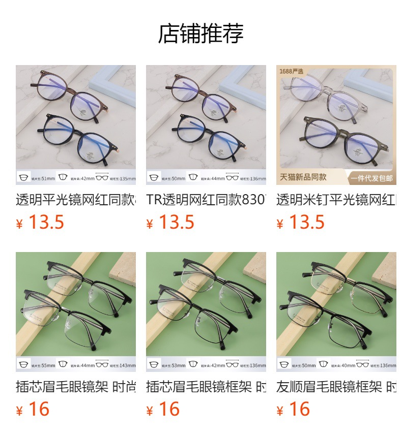 TR透明网红85005新款防蓝光复古眼镜框 黑色书呆子眼镜女生平光镜