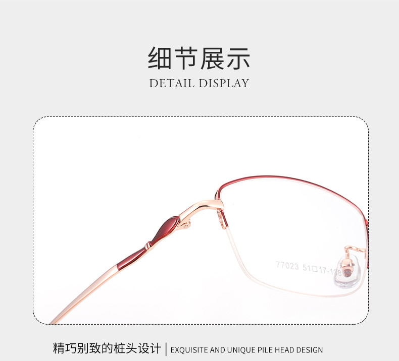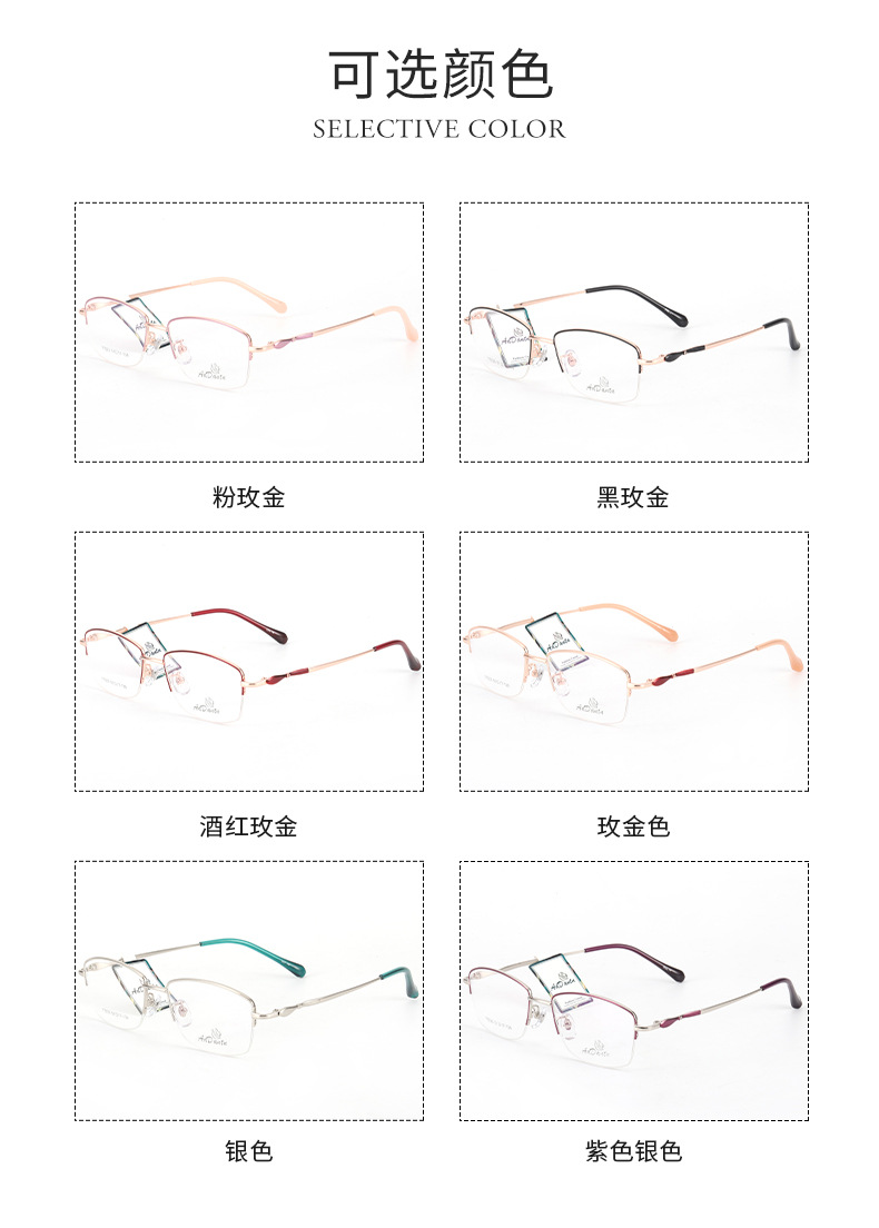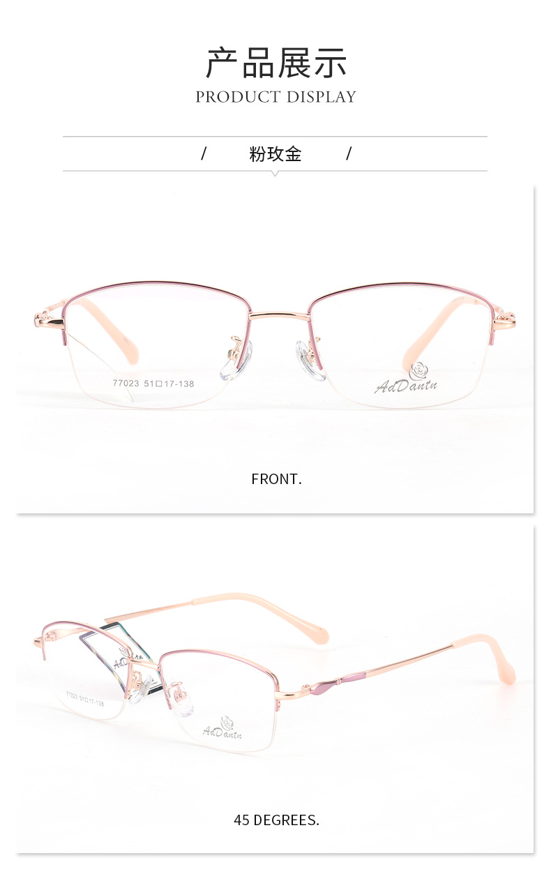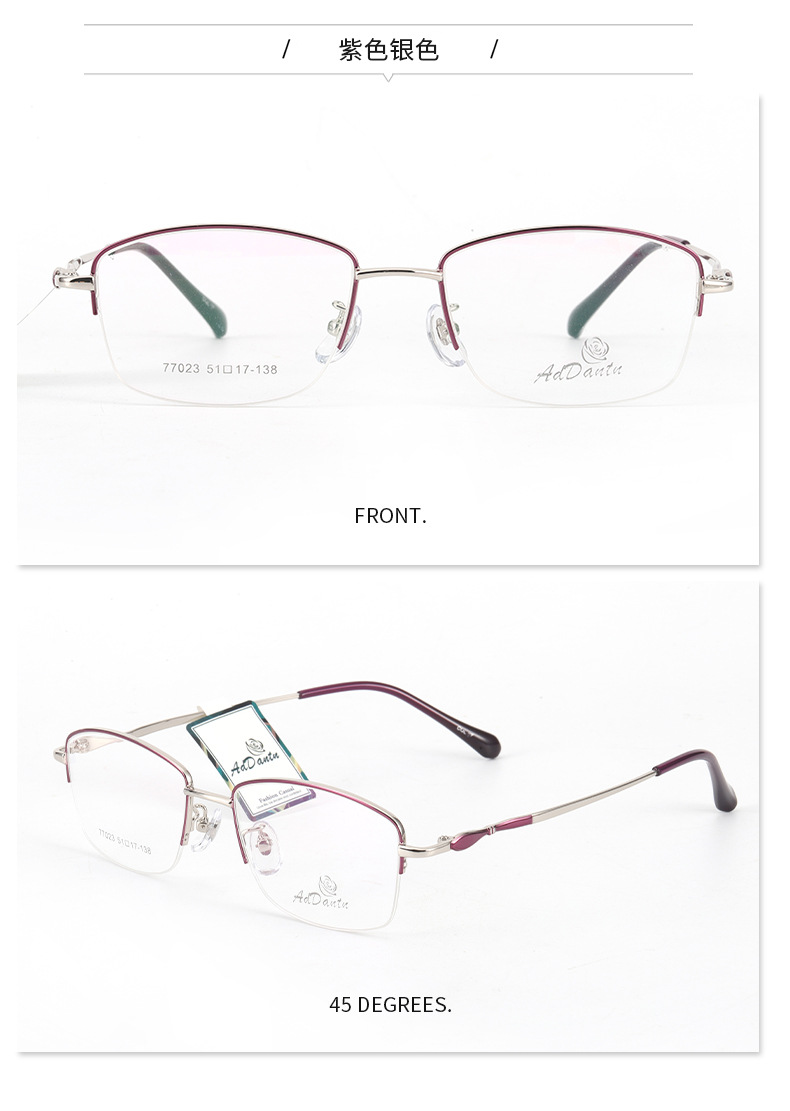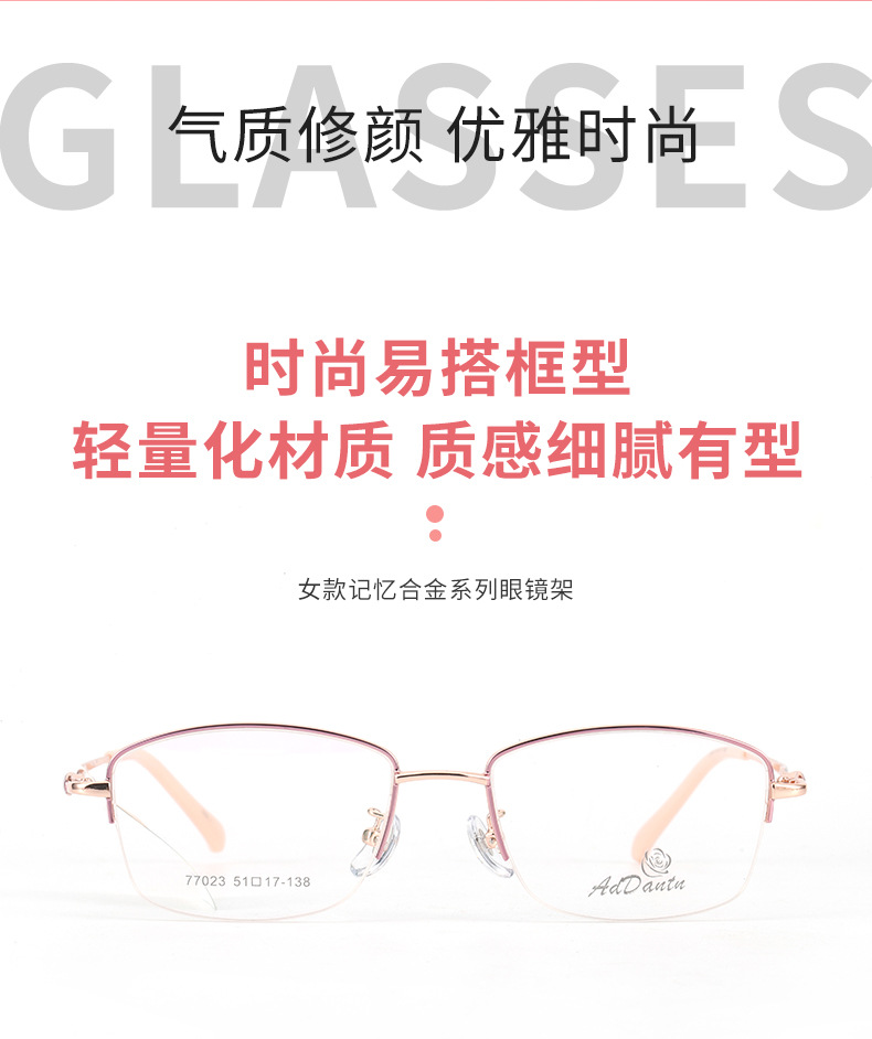 时尚 新款近视眼镜框77023厂家批发可做渐近片女士超轻半框眼镜架