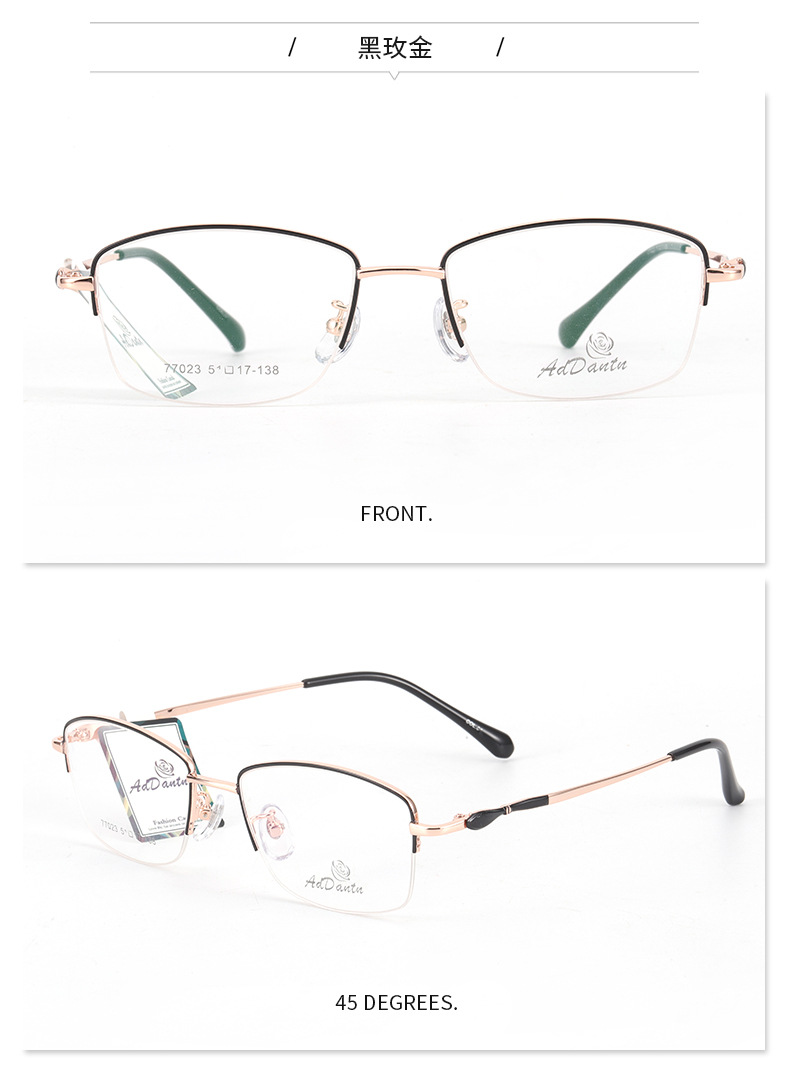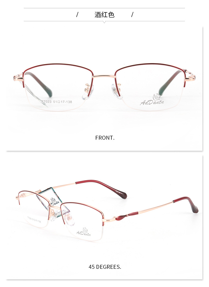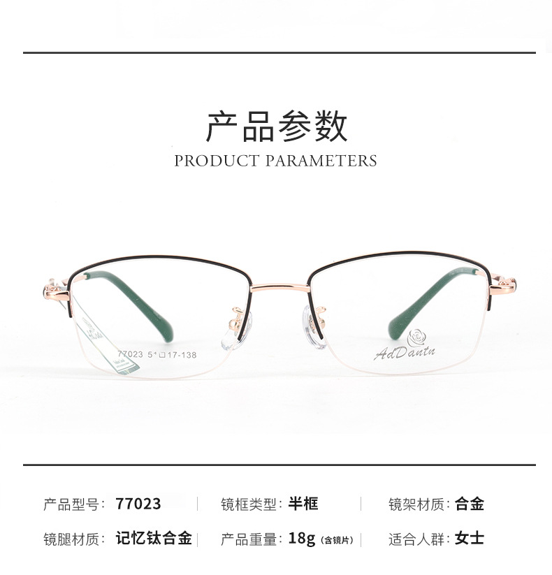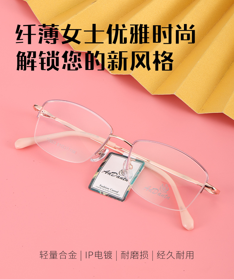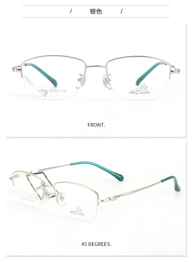 时尚 新款近视眼镜框77023厂家批发可做渐近片女士超轻半框眼镜架
