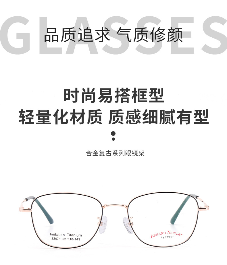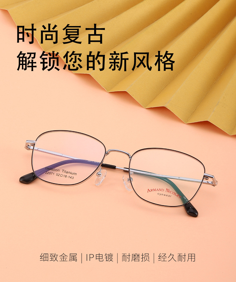 【友顺】宽边复古眼镜 22071双色男女IP电镀眼镜框多边形平光镜