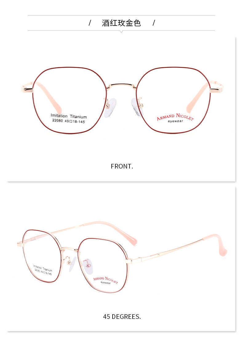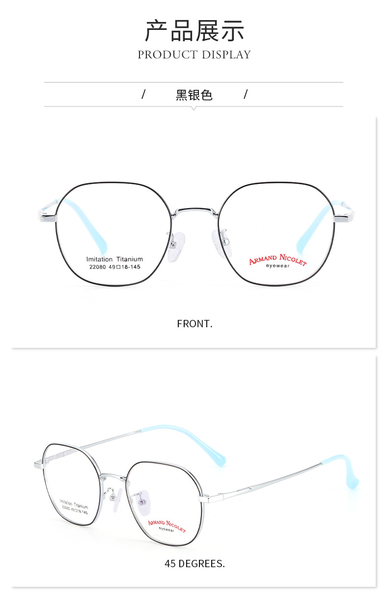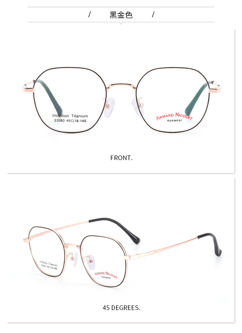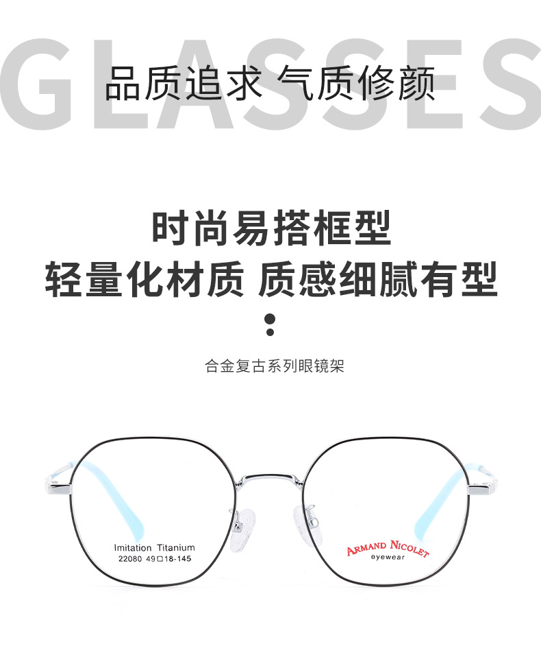 开球潮范复古眼镜小红书种草22080平光镜双色镜框男女中小号款