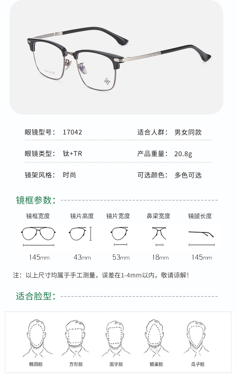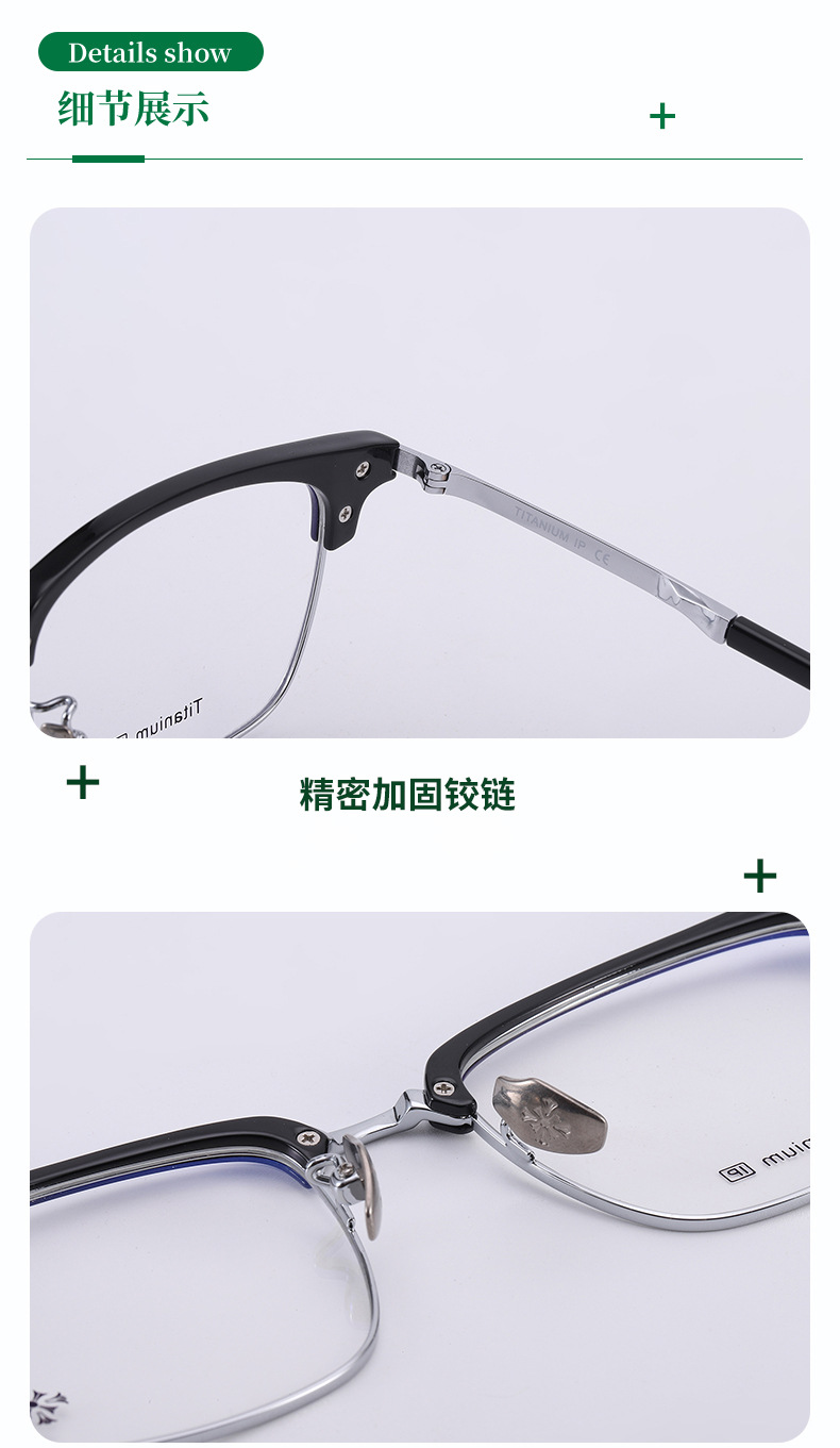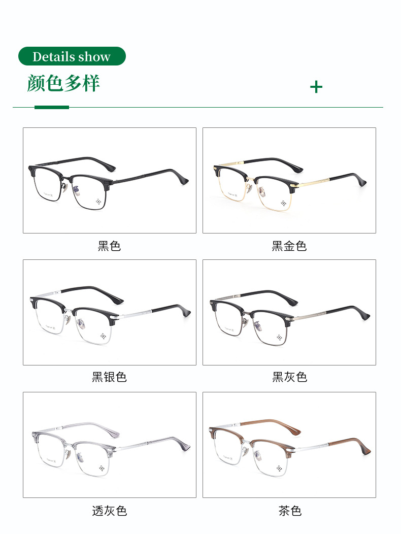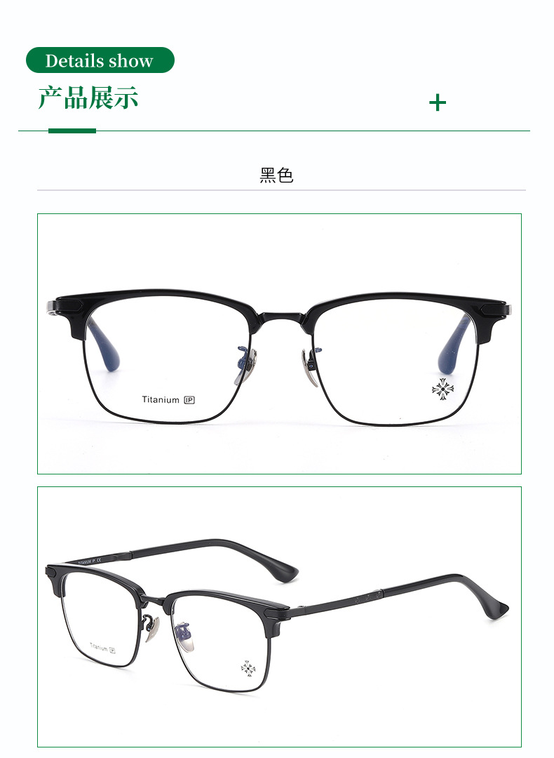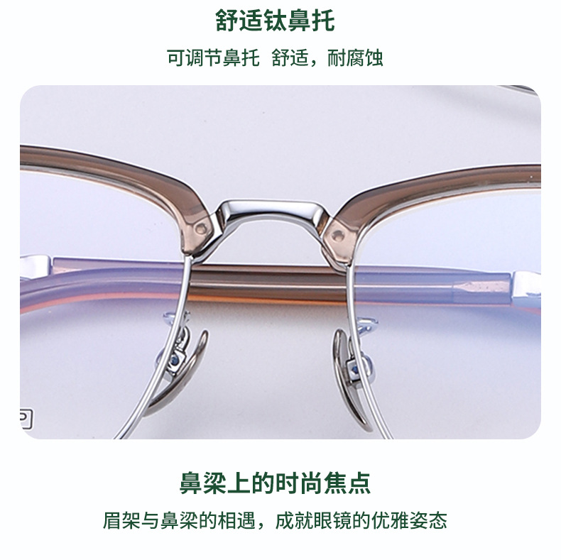 纯钛眉毛眼镜架 工厂批发17042时尚罗心小红书眉线框潮款平光眼镜