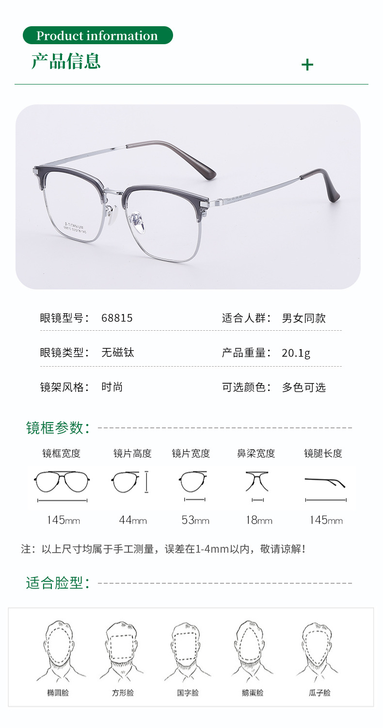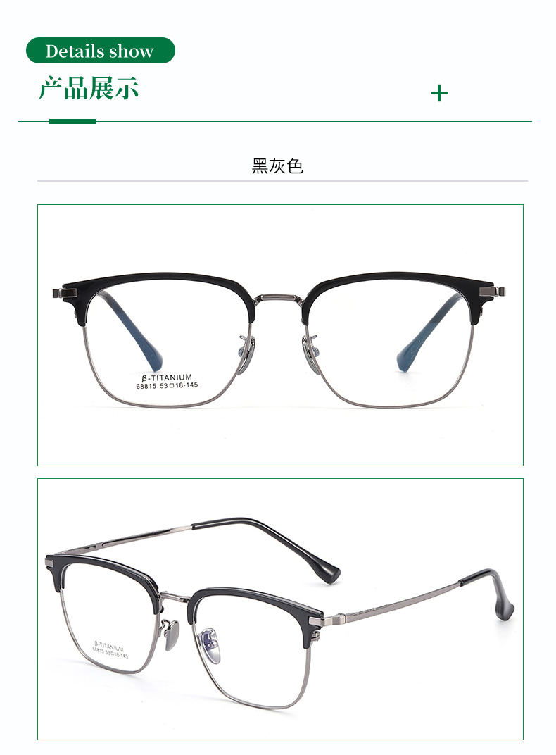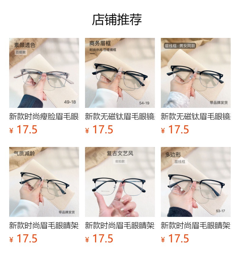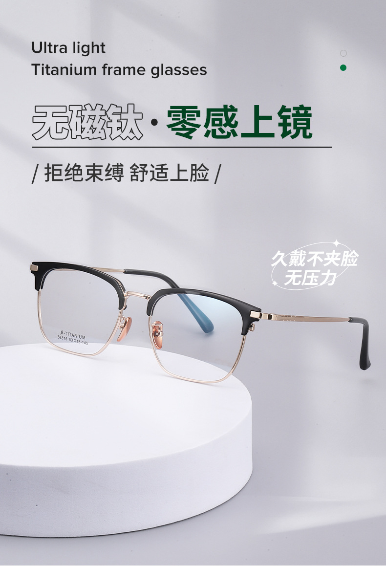新款无磁钛眉毛眼镜架 时尚眉线框68815小红书潮复古透明眼镜批发