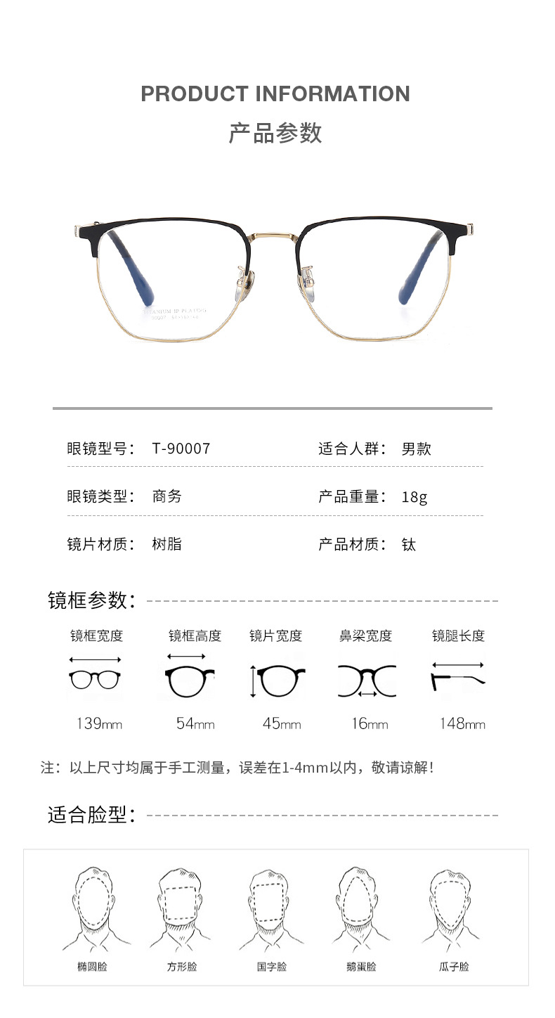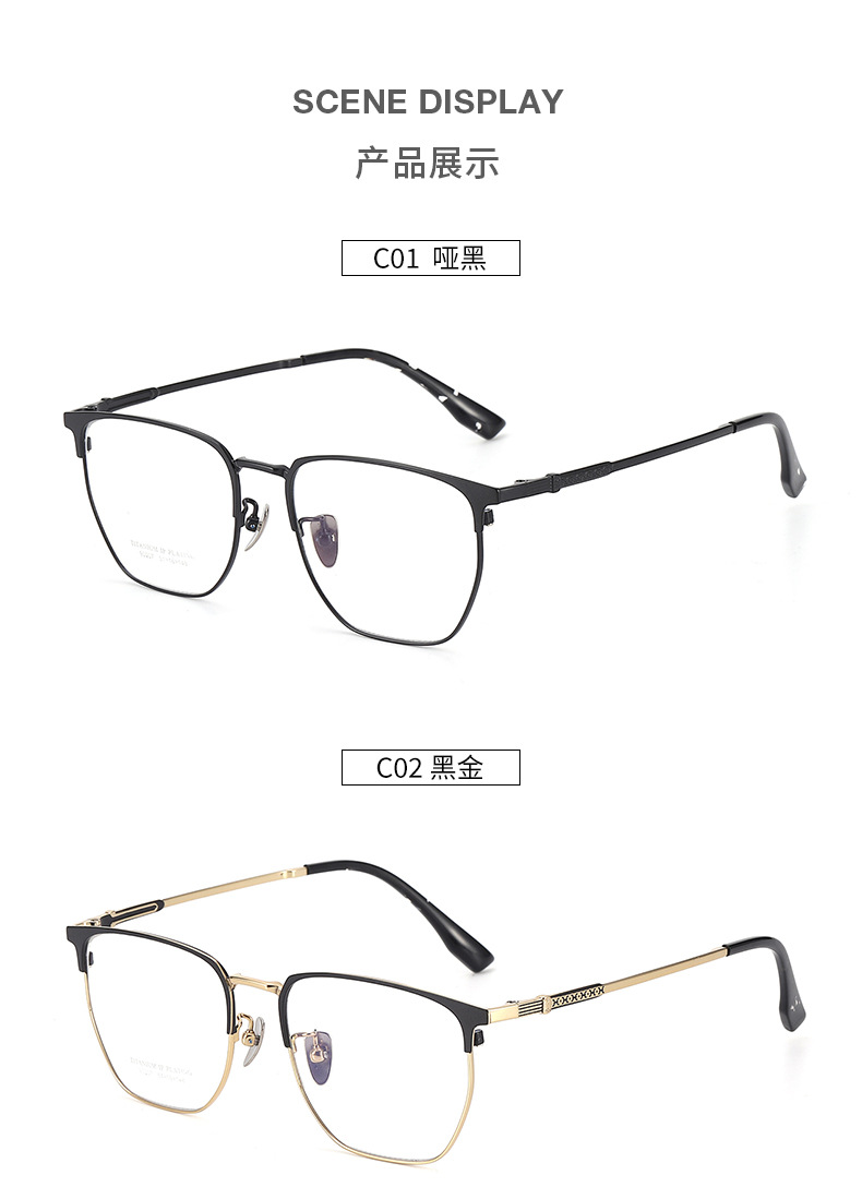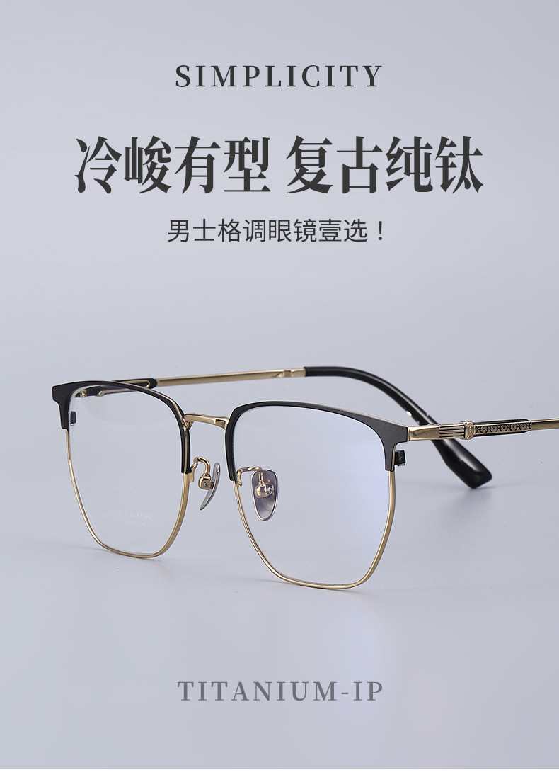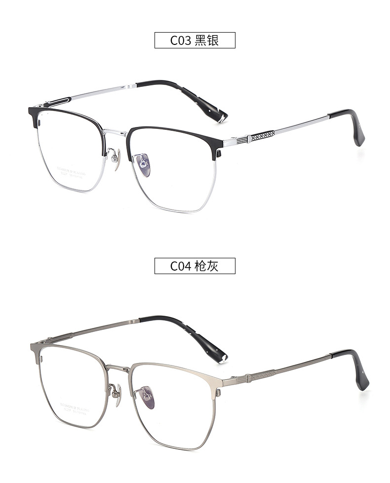 丹阳方框男士眼镜光学近视超轻镜框90007时尚复古纯钛框架眼镜
