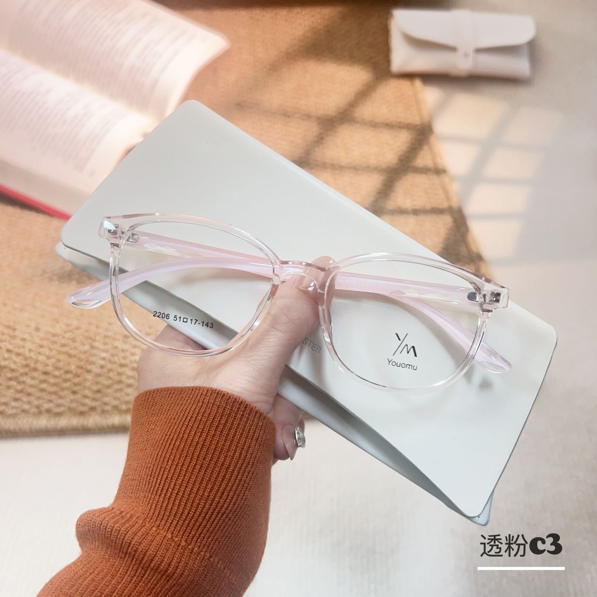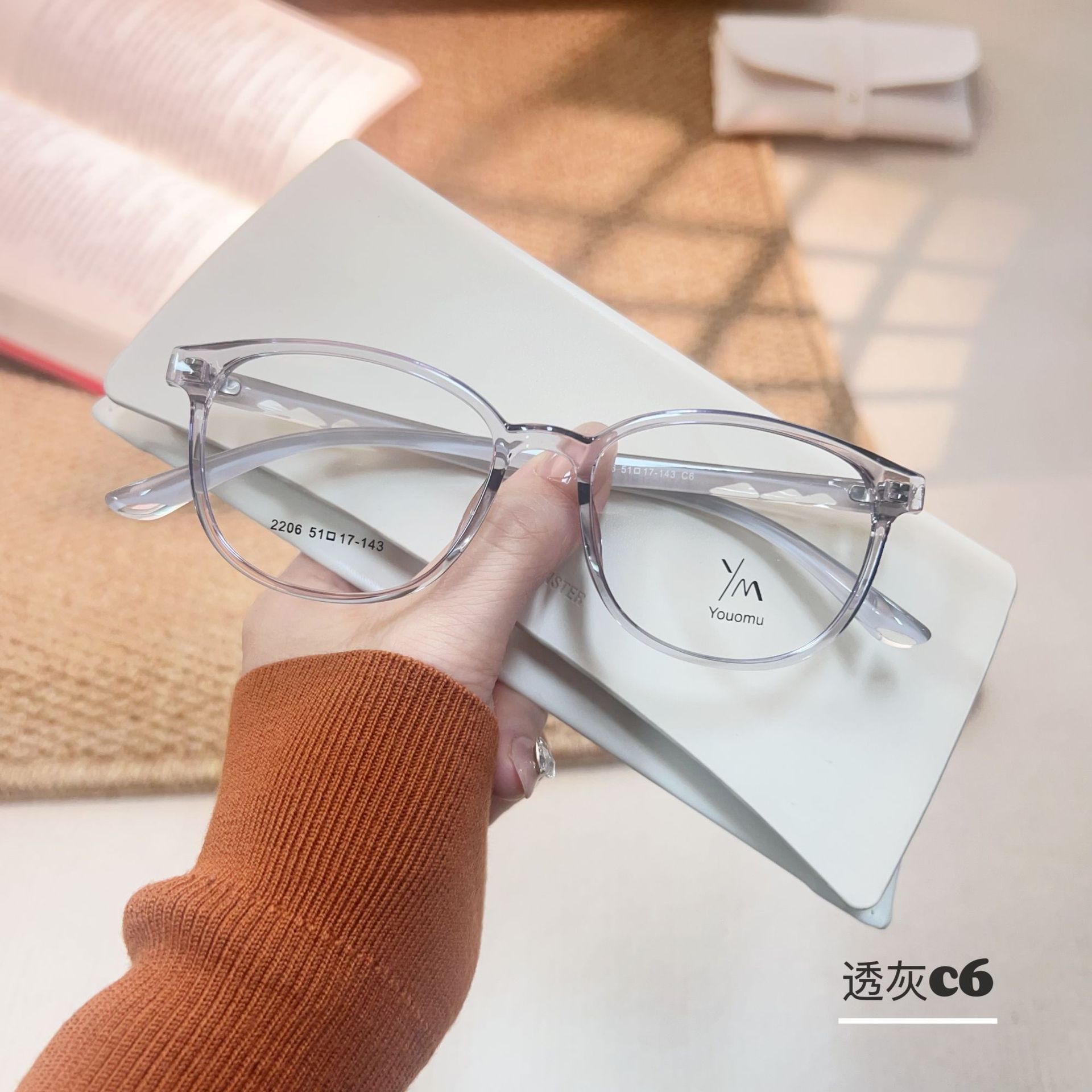 时尚新款透明水晶tr腿眼镜批发2206小红书近视眼镜框TR90眼镜架