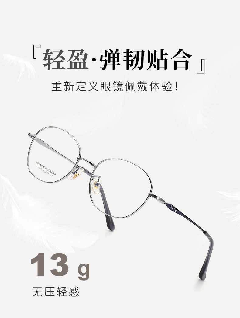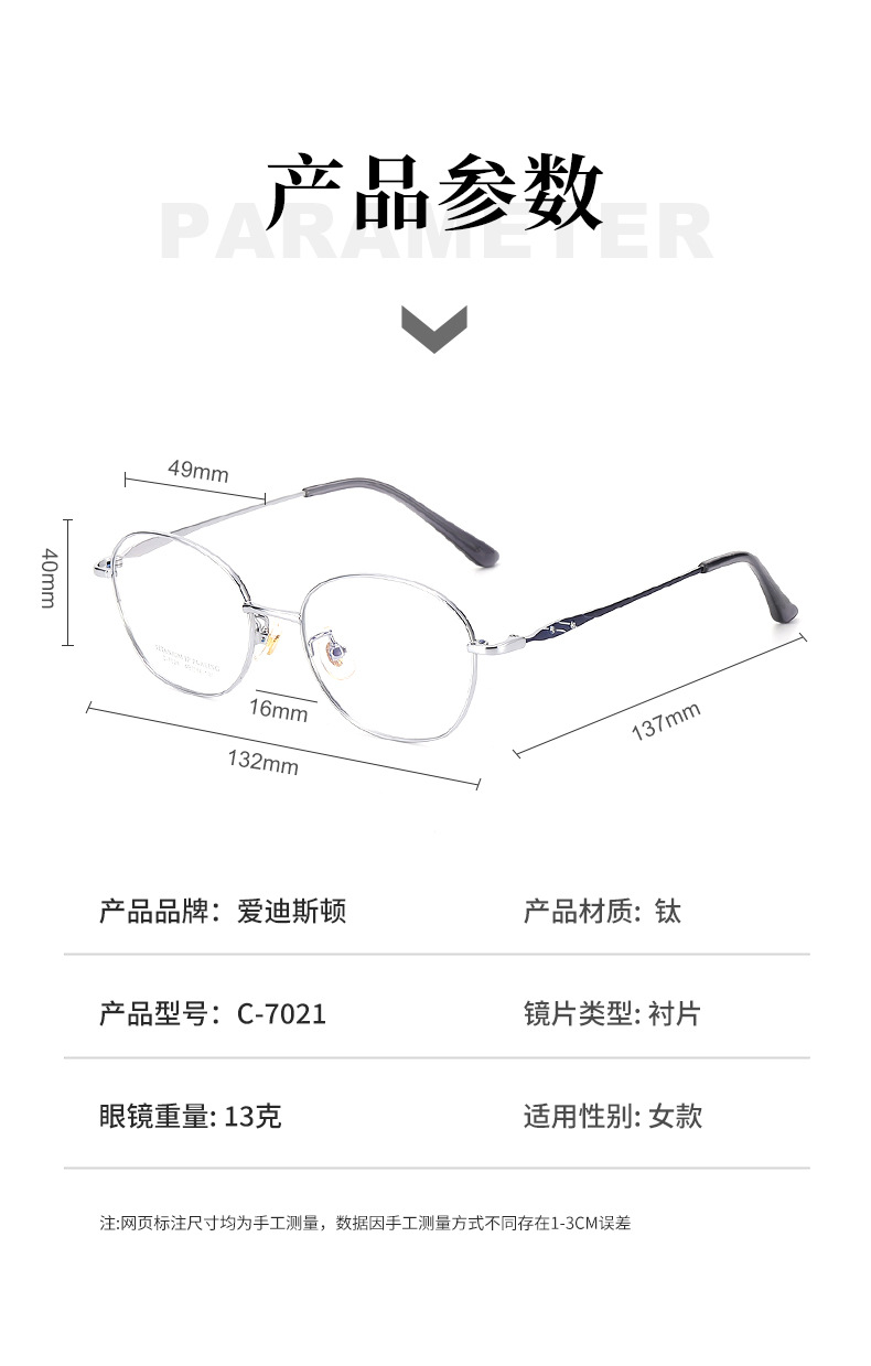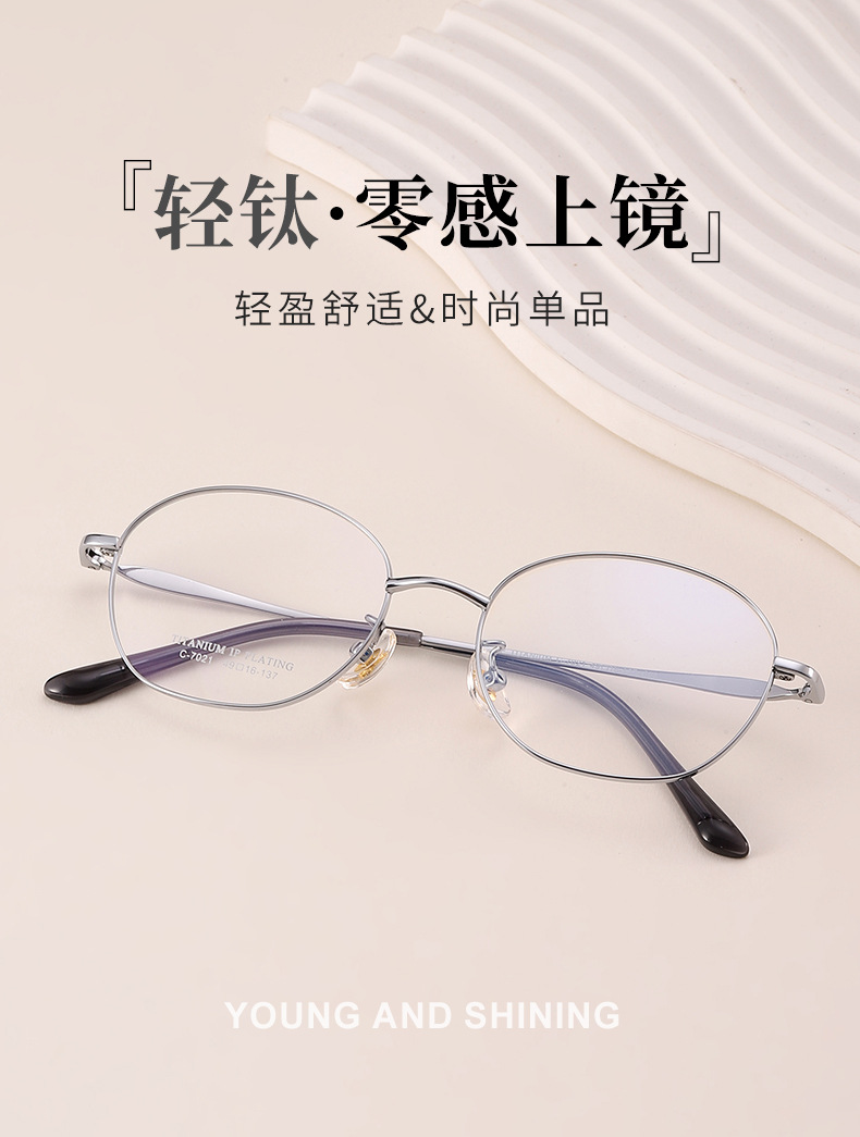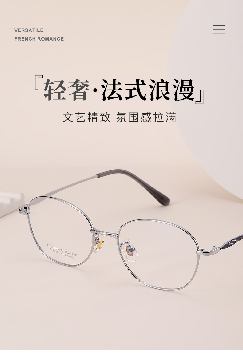 新款超轻眼镜全框镶钻光学眼镜架7021丹阳多边形全钛眼镜框女高级