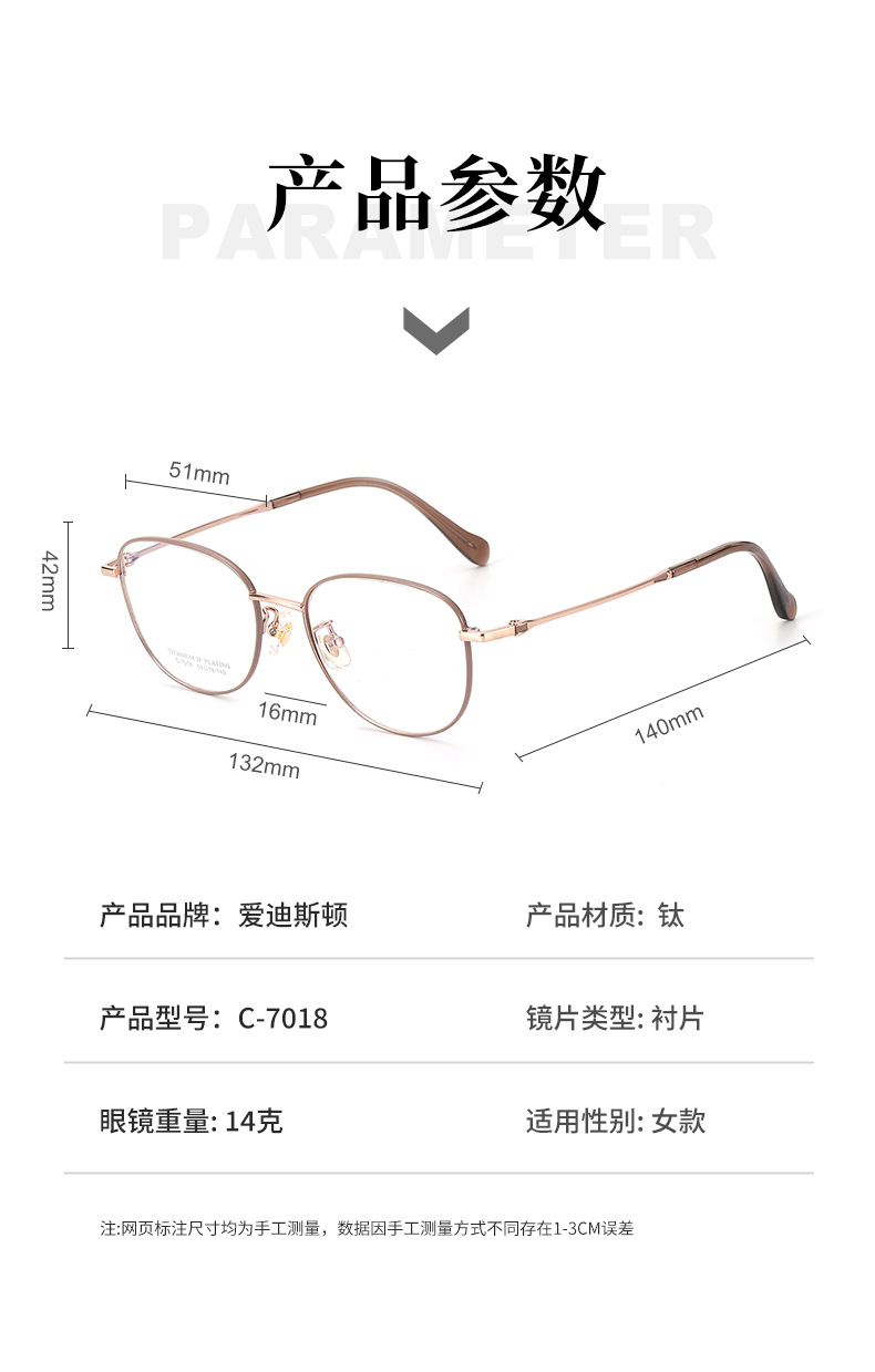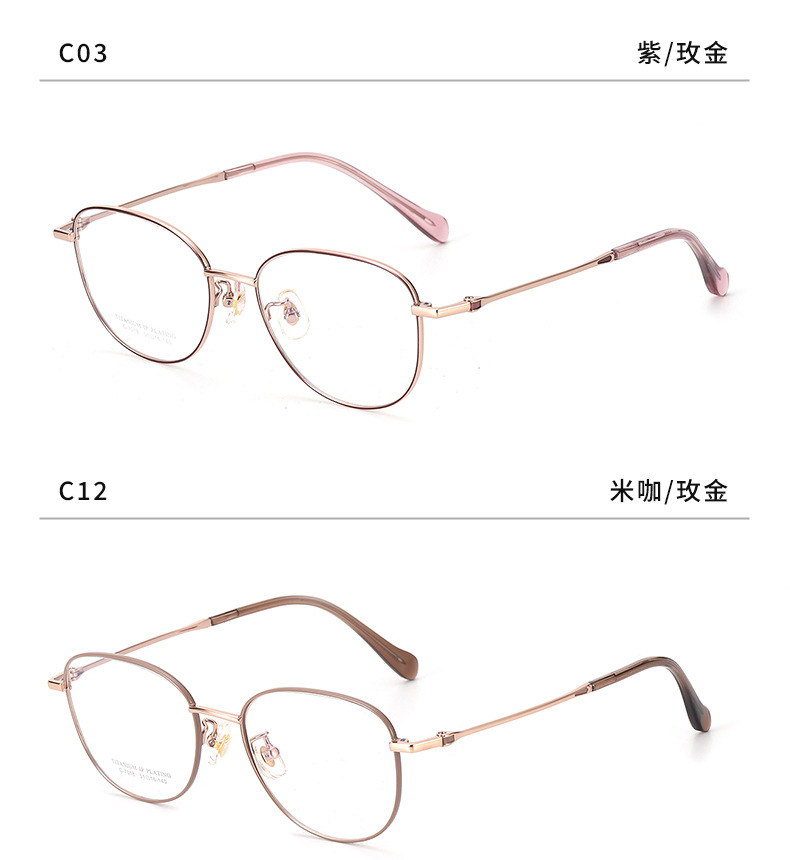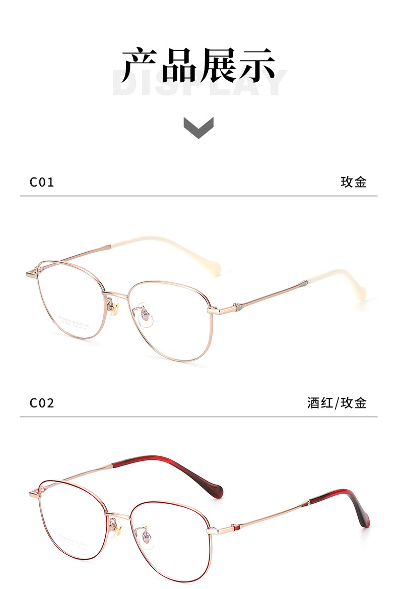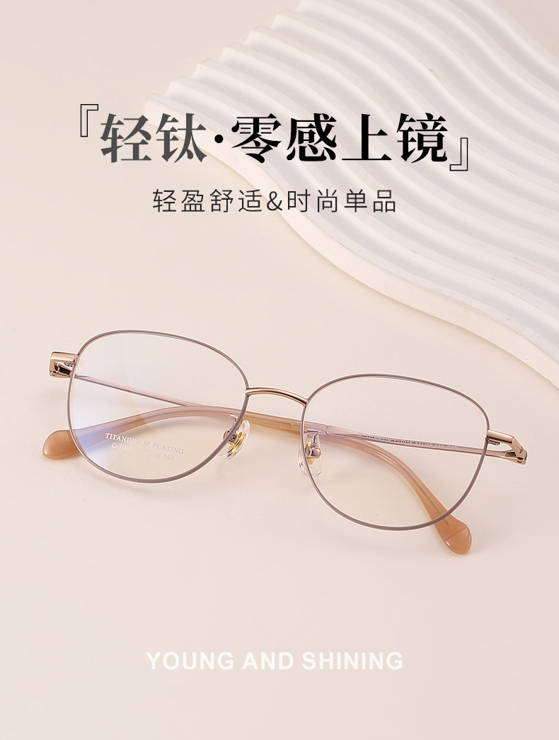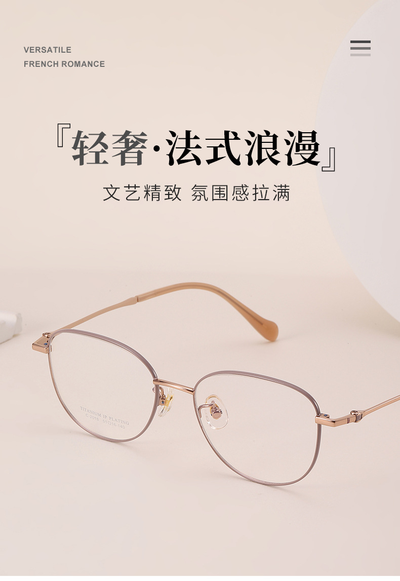 新款超轻纯钛眼镜框近视素颜眼镜女全框配渐近7018丹阳眼镜工厂店
