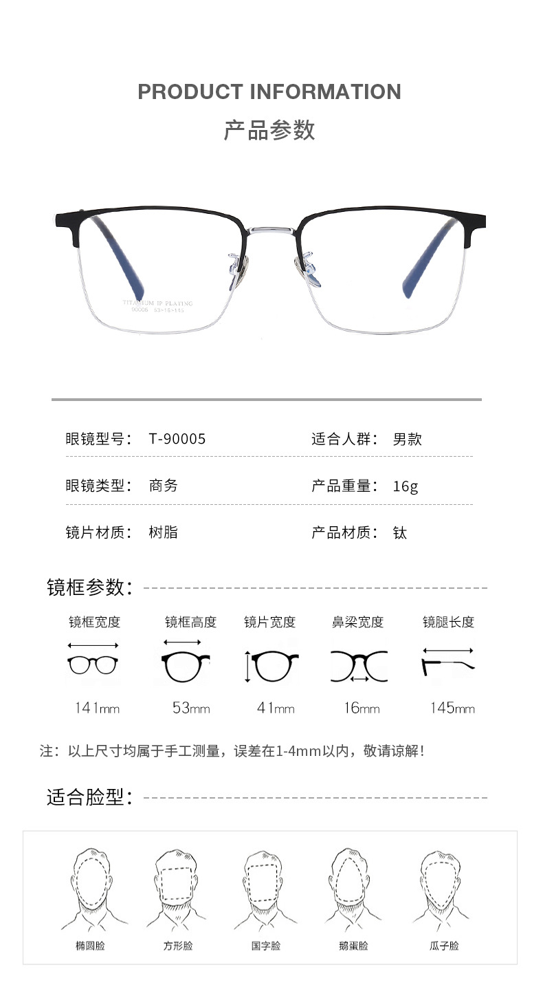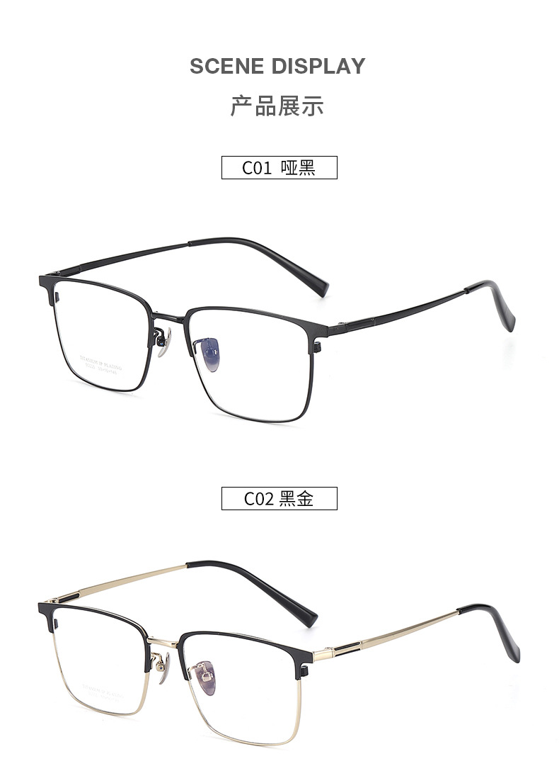 丹阳全框超轻眼镜架复古方框眼镜90005时尚商务纯钛眼镜男近视
