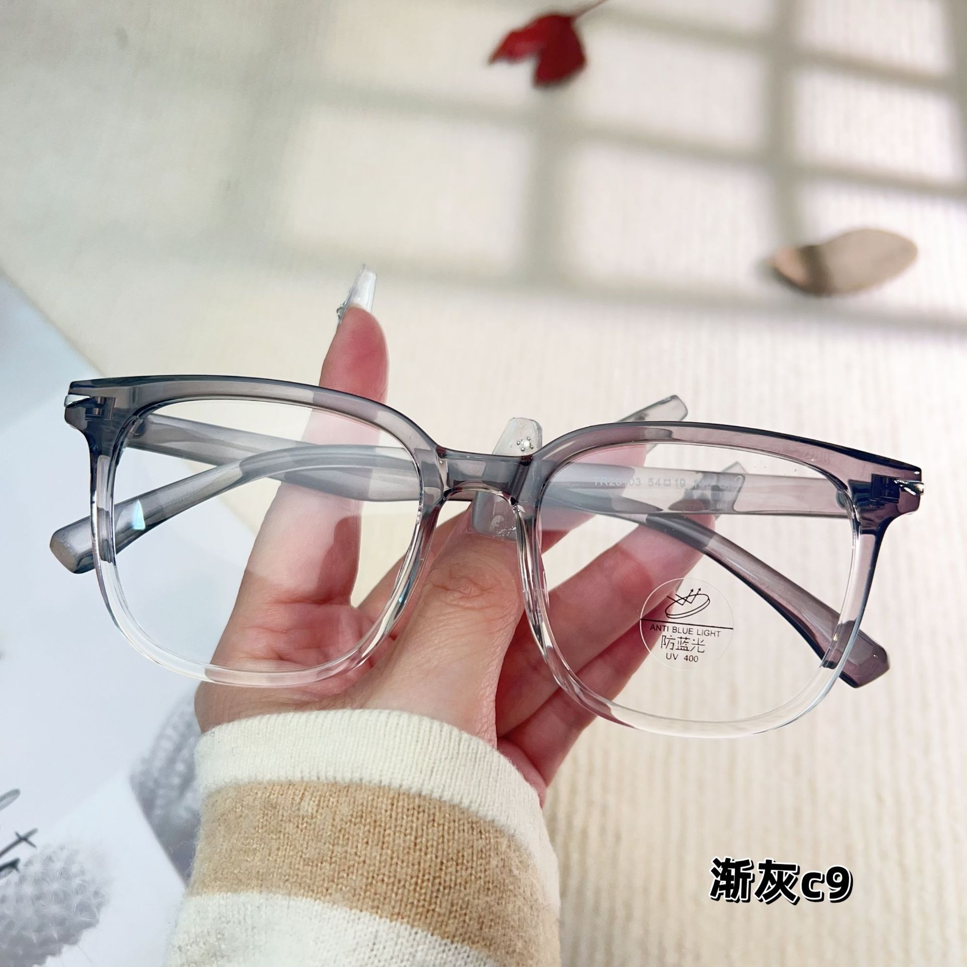 TR透明网红同款23103防蓝光复古眼镜框 铆钉显瘦学生tr90平光镜