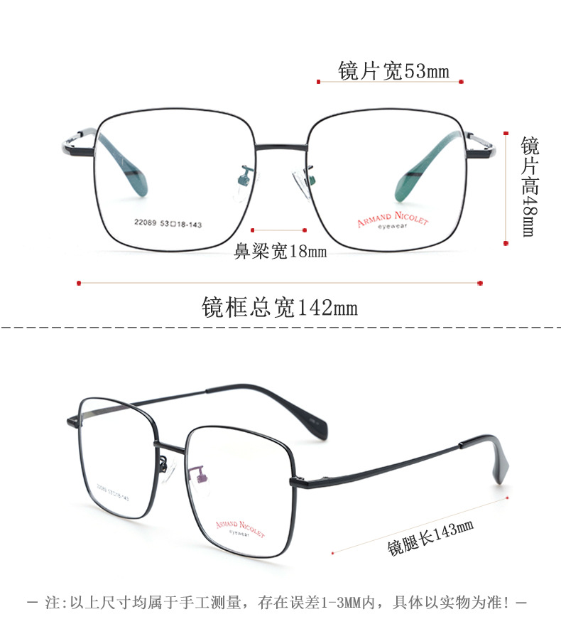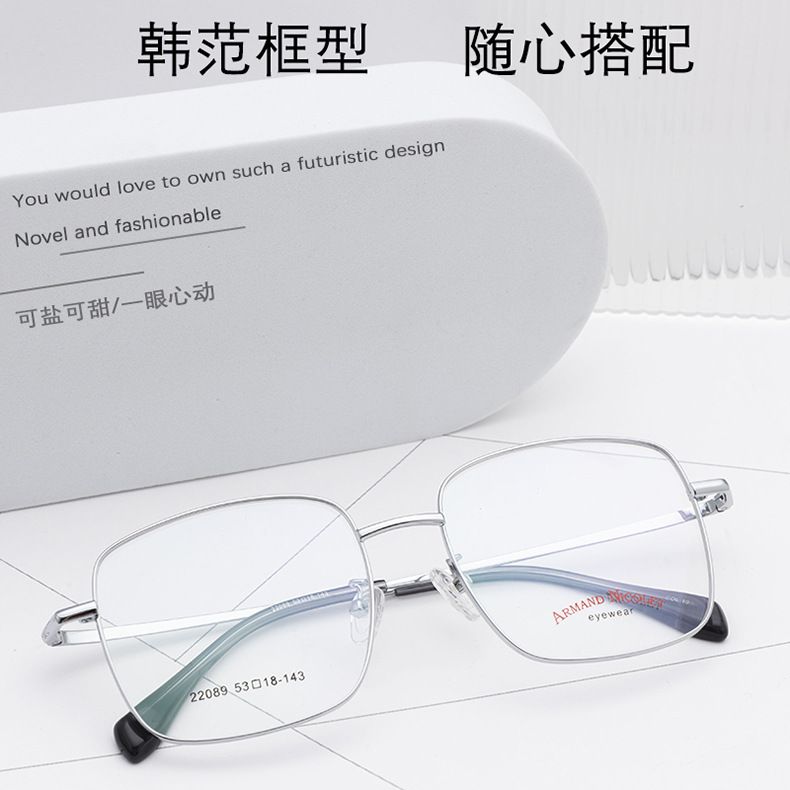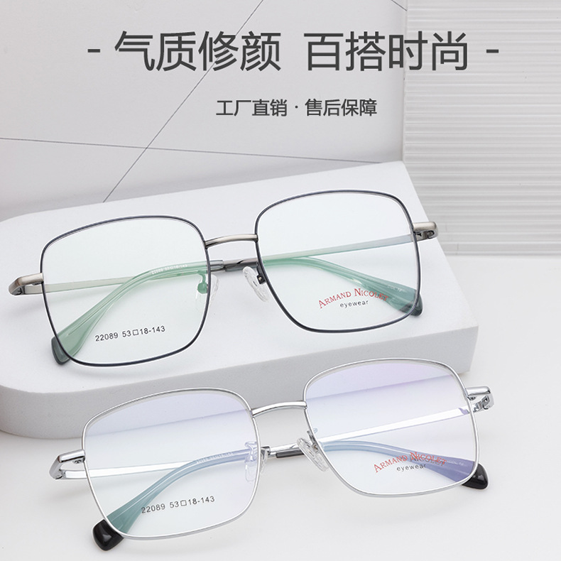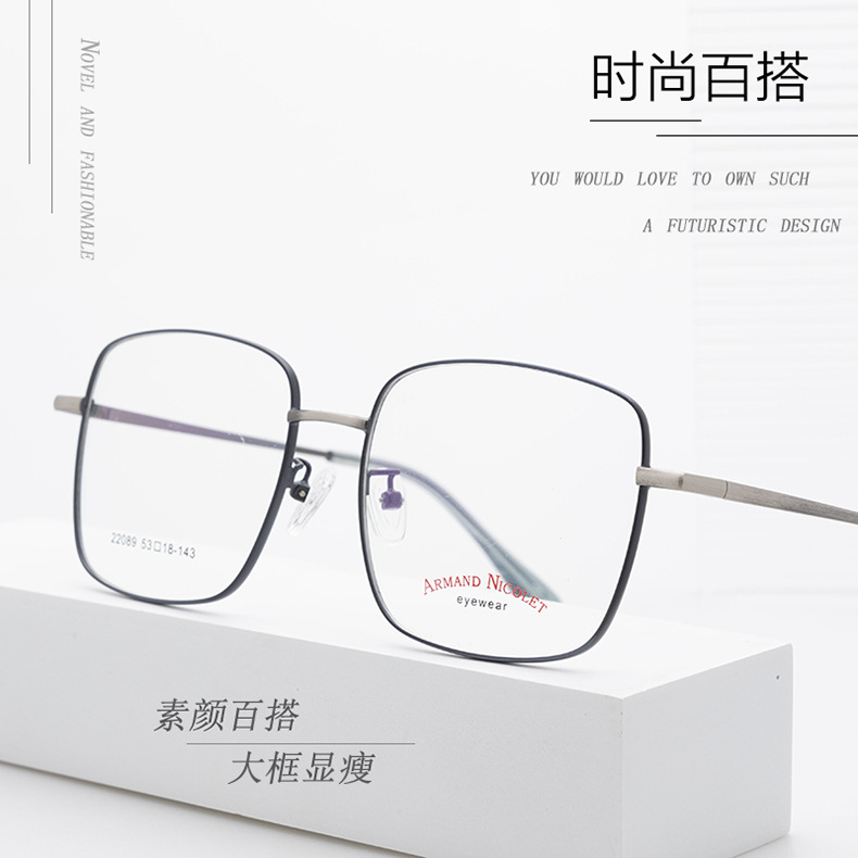 小红书种草方形复古眼镜框双色平光镜厂家批发22089宽边丝镜架