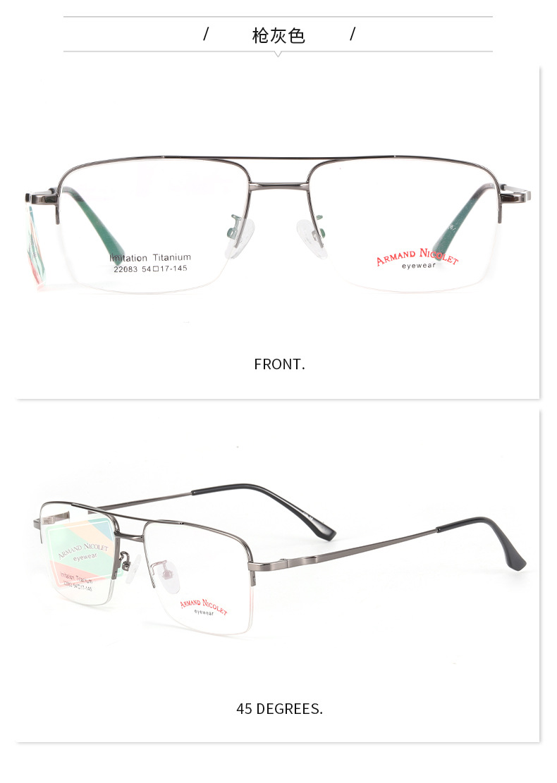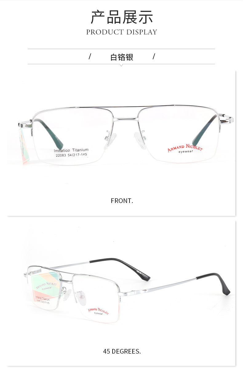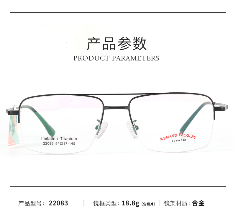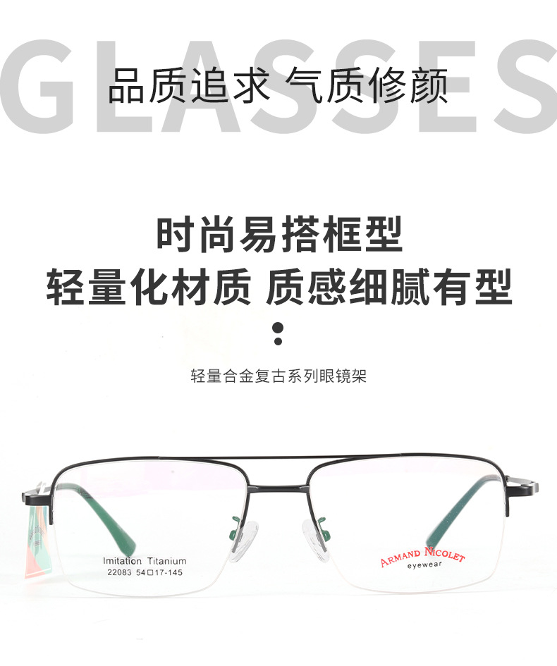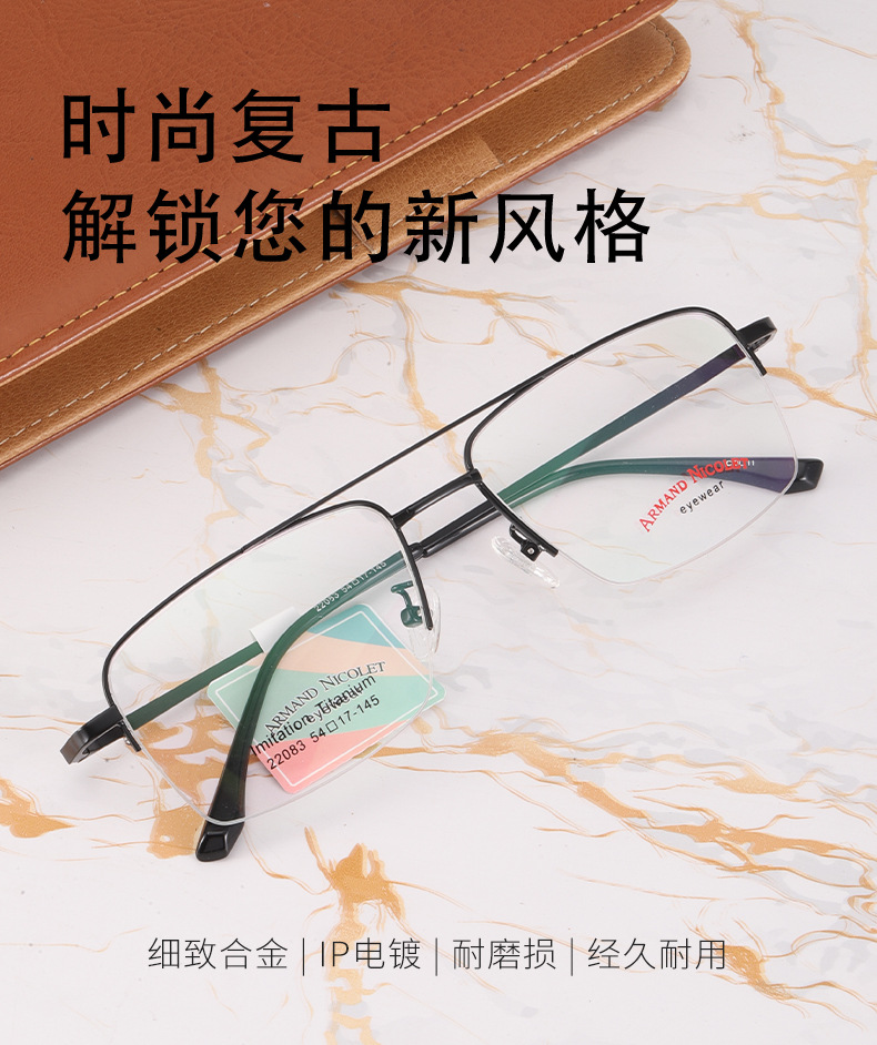 开球潮范复古眼镜半框镜架22083可配墨镜男女式双梁平光镜框