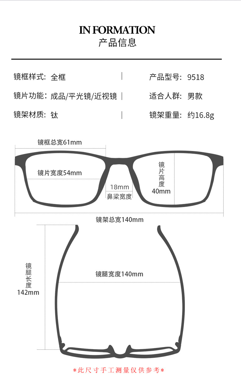 男女士长城腿复古眼镜 钛架多边形镜框9518 开球近视眼镜全框批发