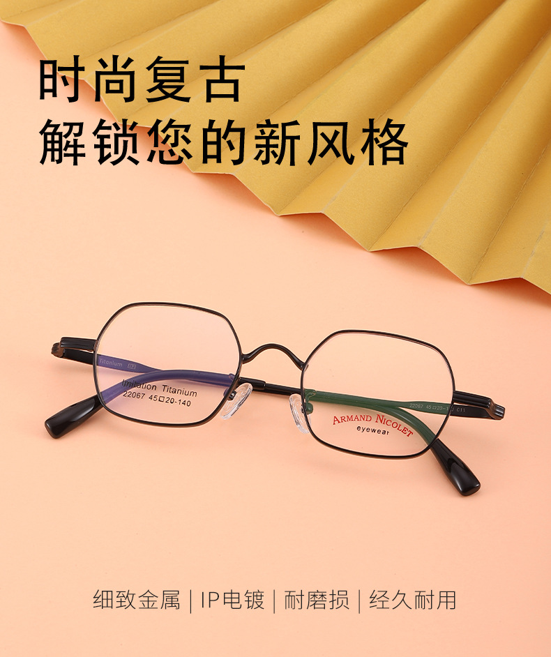 日系复古平光眼镜22067万年龟框型男女多边形眼镜 配高度