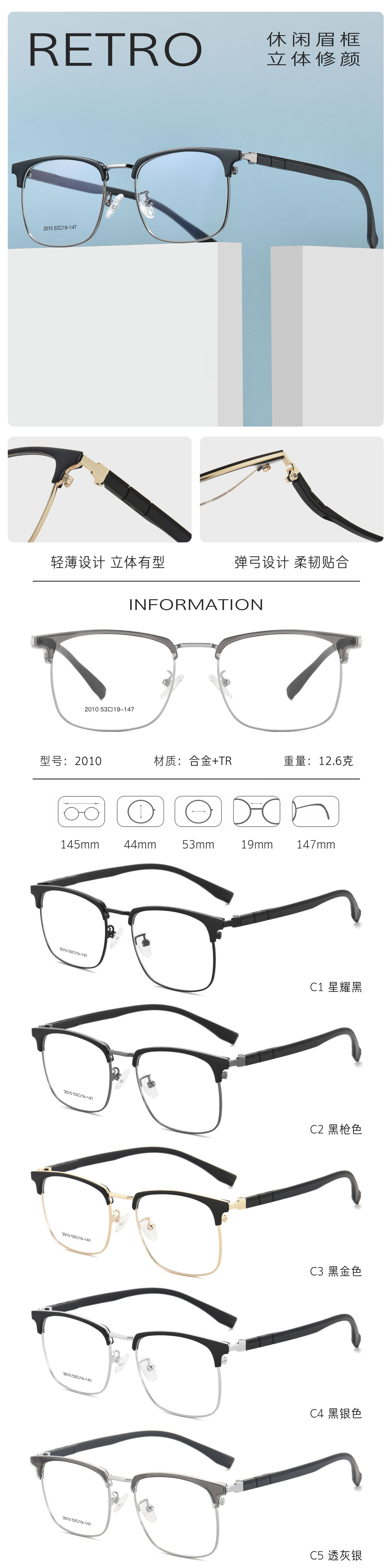 痞帅男款眼镜潮流半框 眉毛框眼镜复古镜框