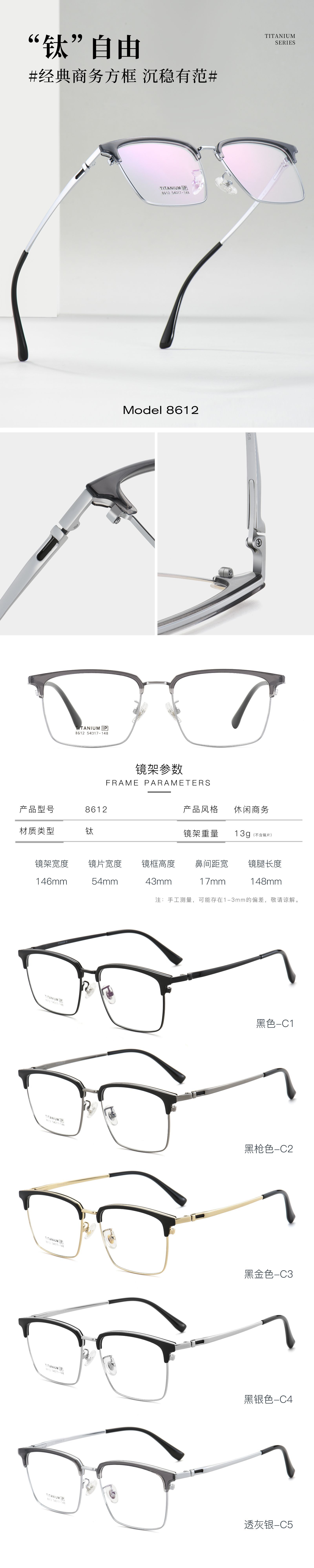 大脸商务款男士镜架批发现货眉毛架