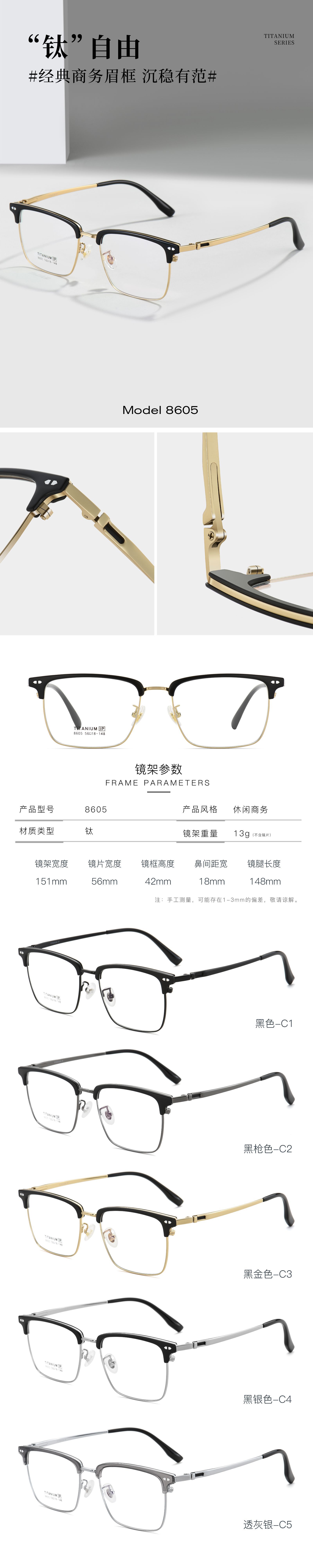 超轻纯钛方框近视眼镜 男眼镜高级感眼镜框