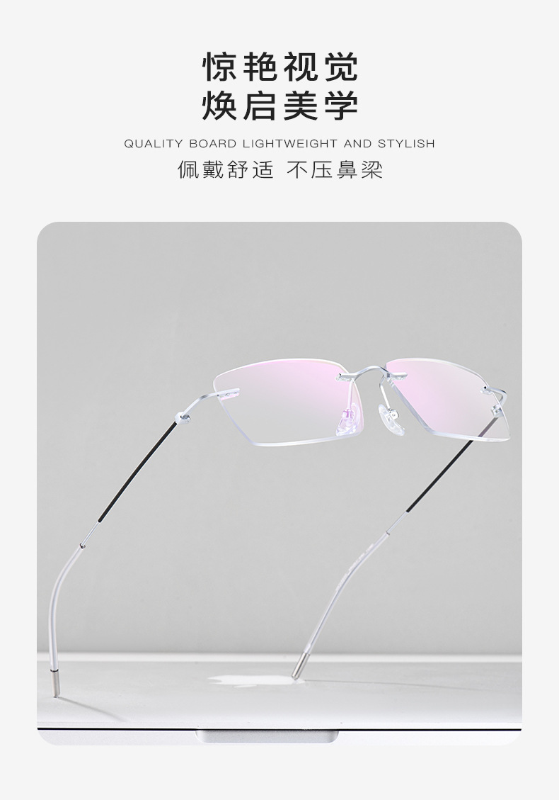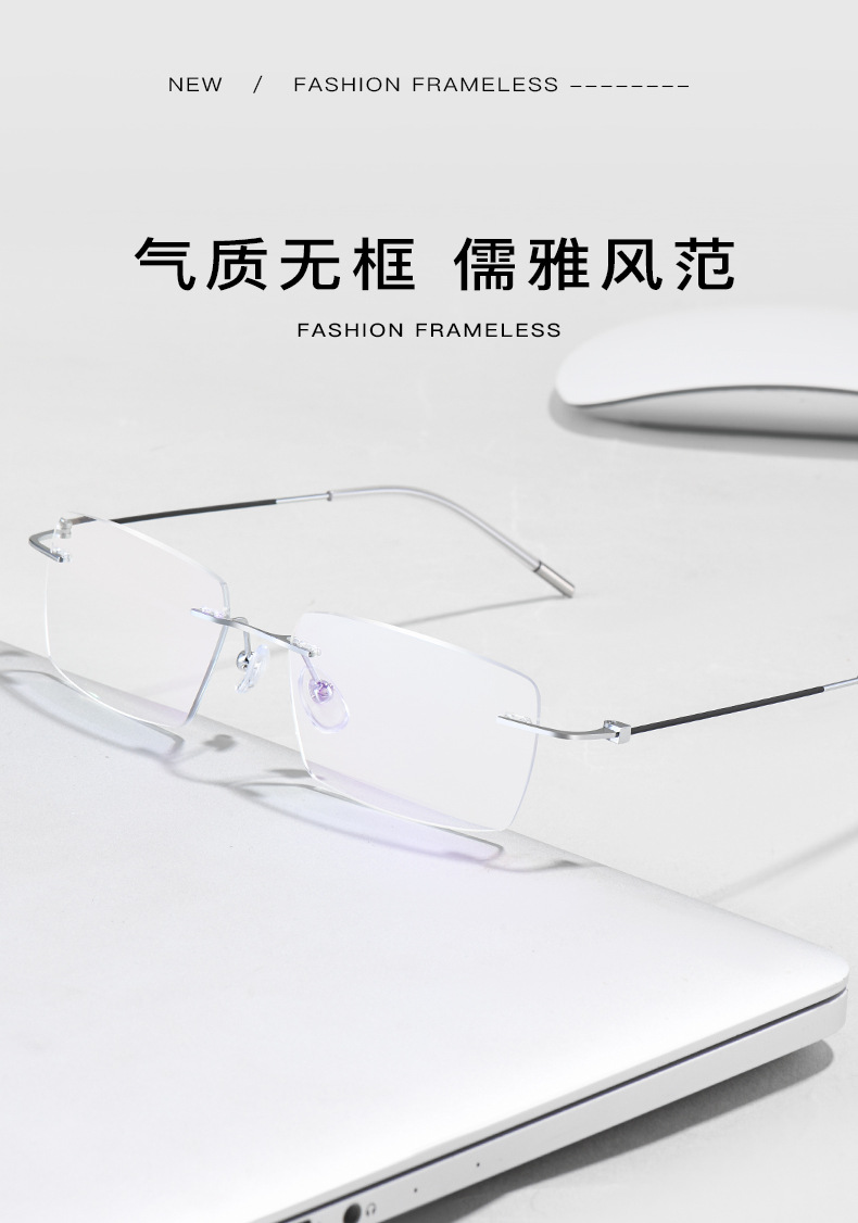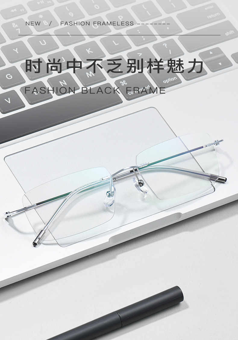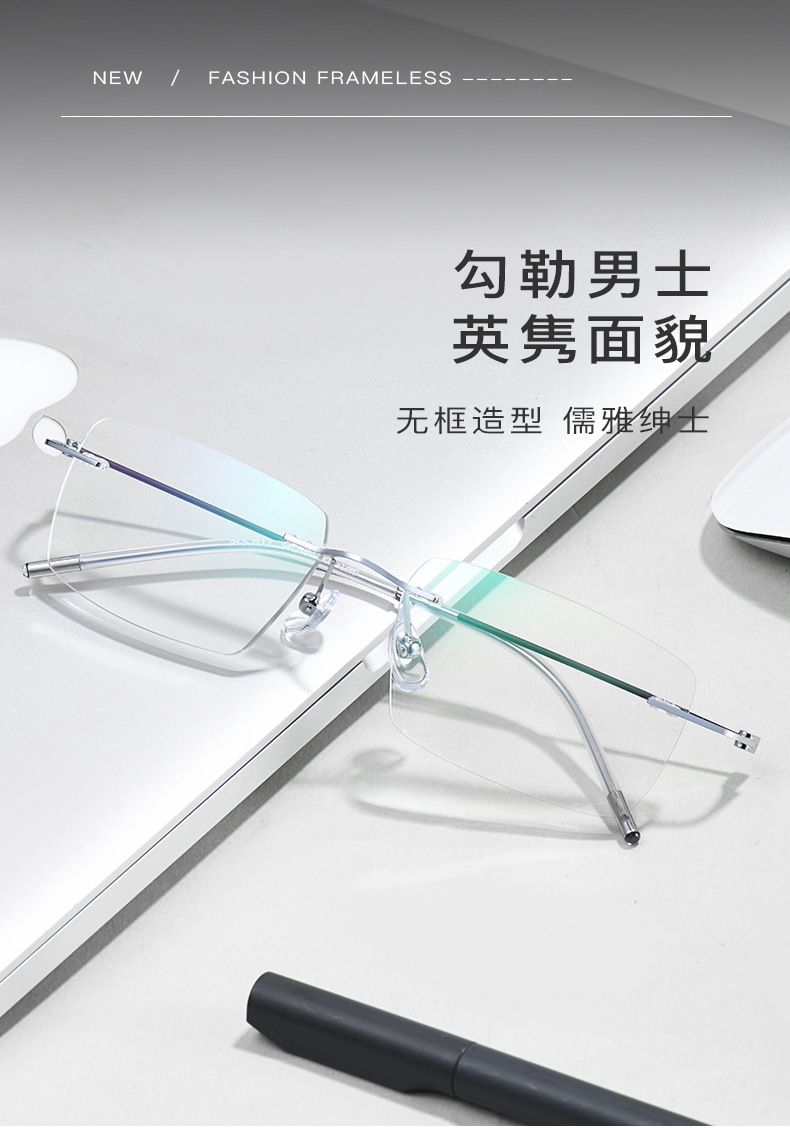 纯钛无边框高清老花镜防蓝光方框同款切边防辐射时尚眼镜