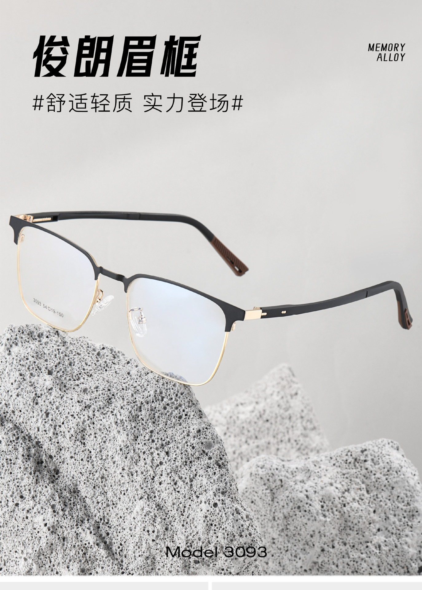 超轻眉毛框架男款商务全框眼镜塑钢合金大脸超弹镜架