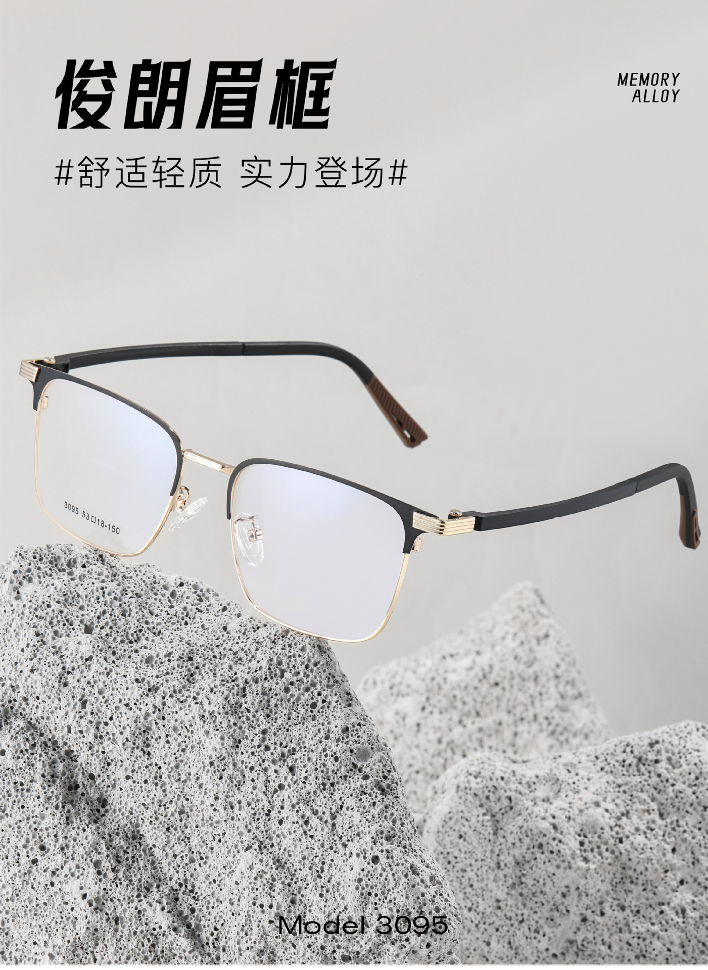 近视眼镜架商务男款眉毛架超轻塑钢合金复古文艺眼镜
