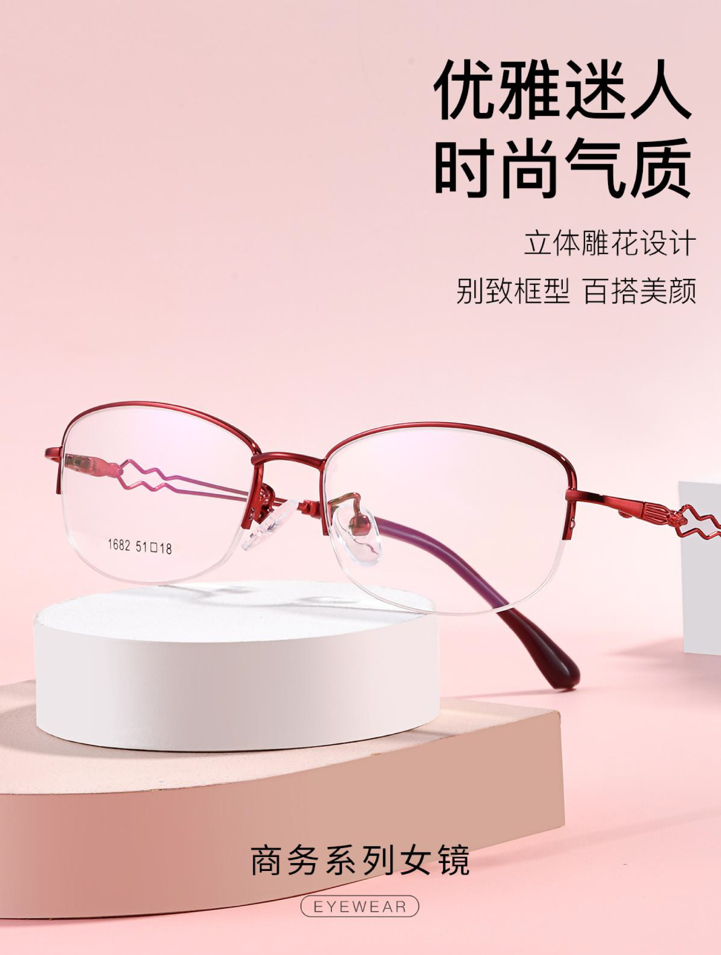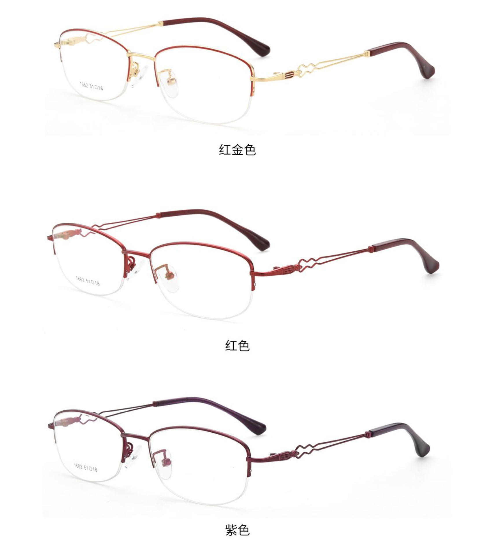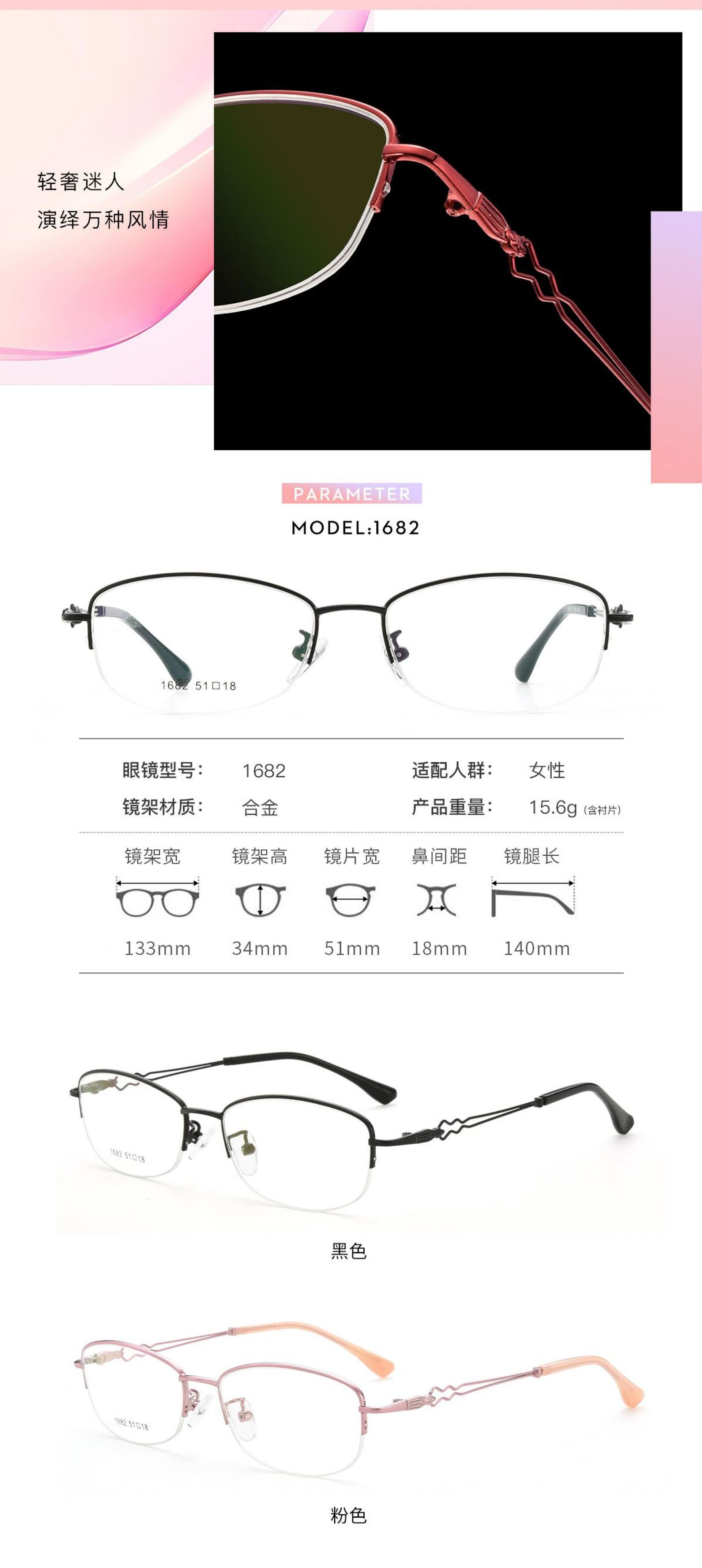 新款超轻金属女士半框眼镜 半框眼镜 架可配近视散光