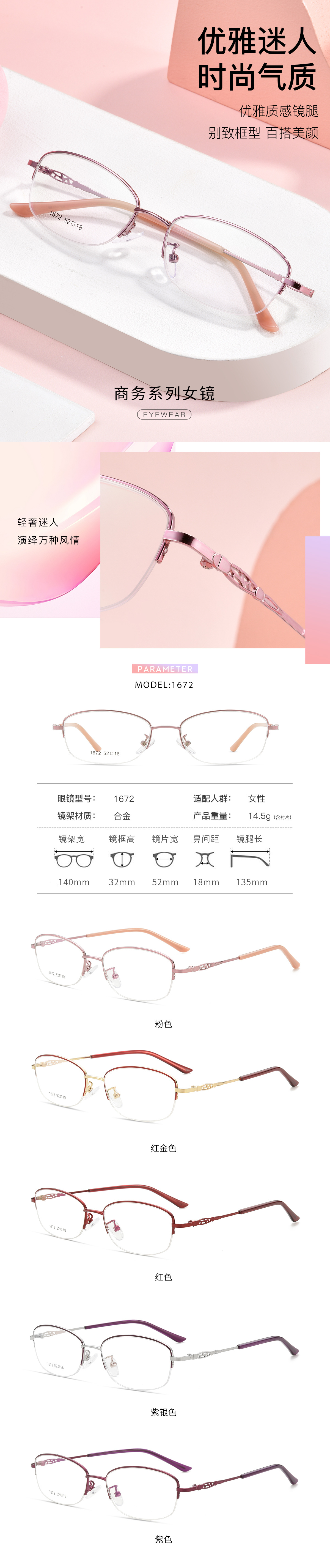 超轻商务眼镜架女士可配近视时尚复古金属合金IP电镀