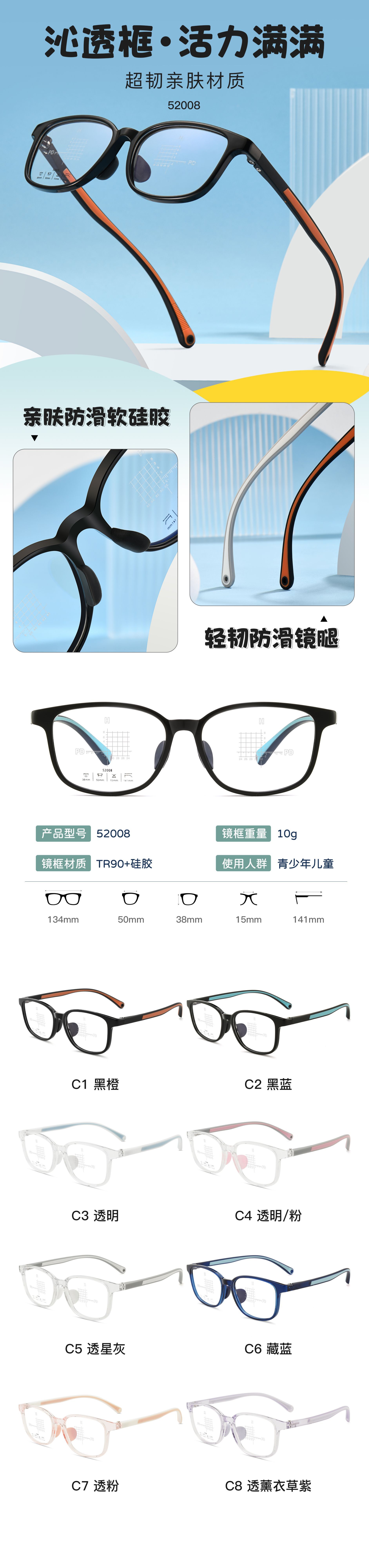 防滑儿童眼镜框双色亲肤镜架弹性硅胶眼镜