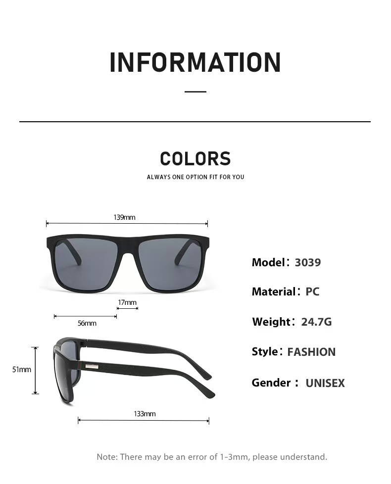 新款时尚太阳镜炫彩驾驶近视镜太阳眼镜高级感男方形