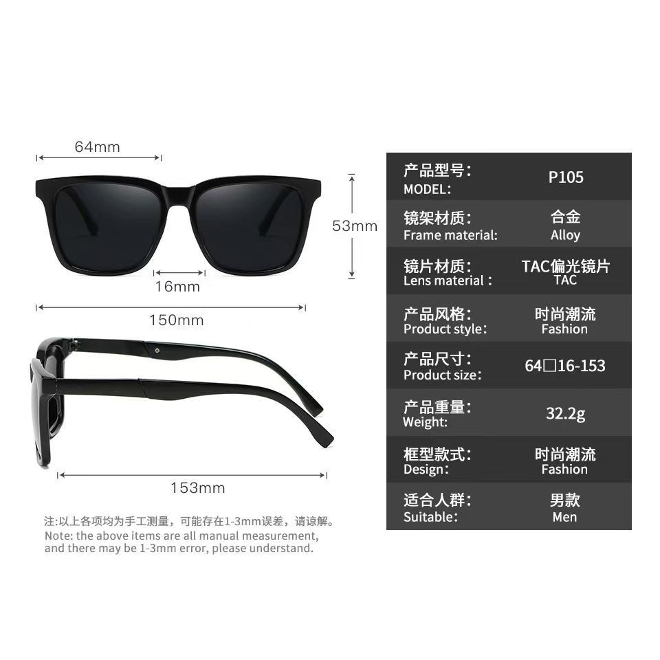 新款跨境男士偏光太阳镜经典方框墨镜女太阳眼镜