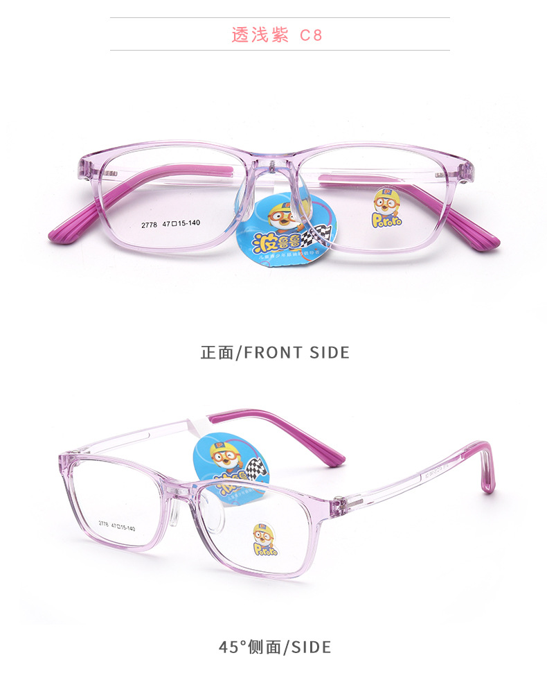 TR90儿童眼镜框架近视女硅胶鼻托2778可爱学生架男韩版透明色系