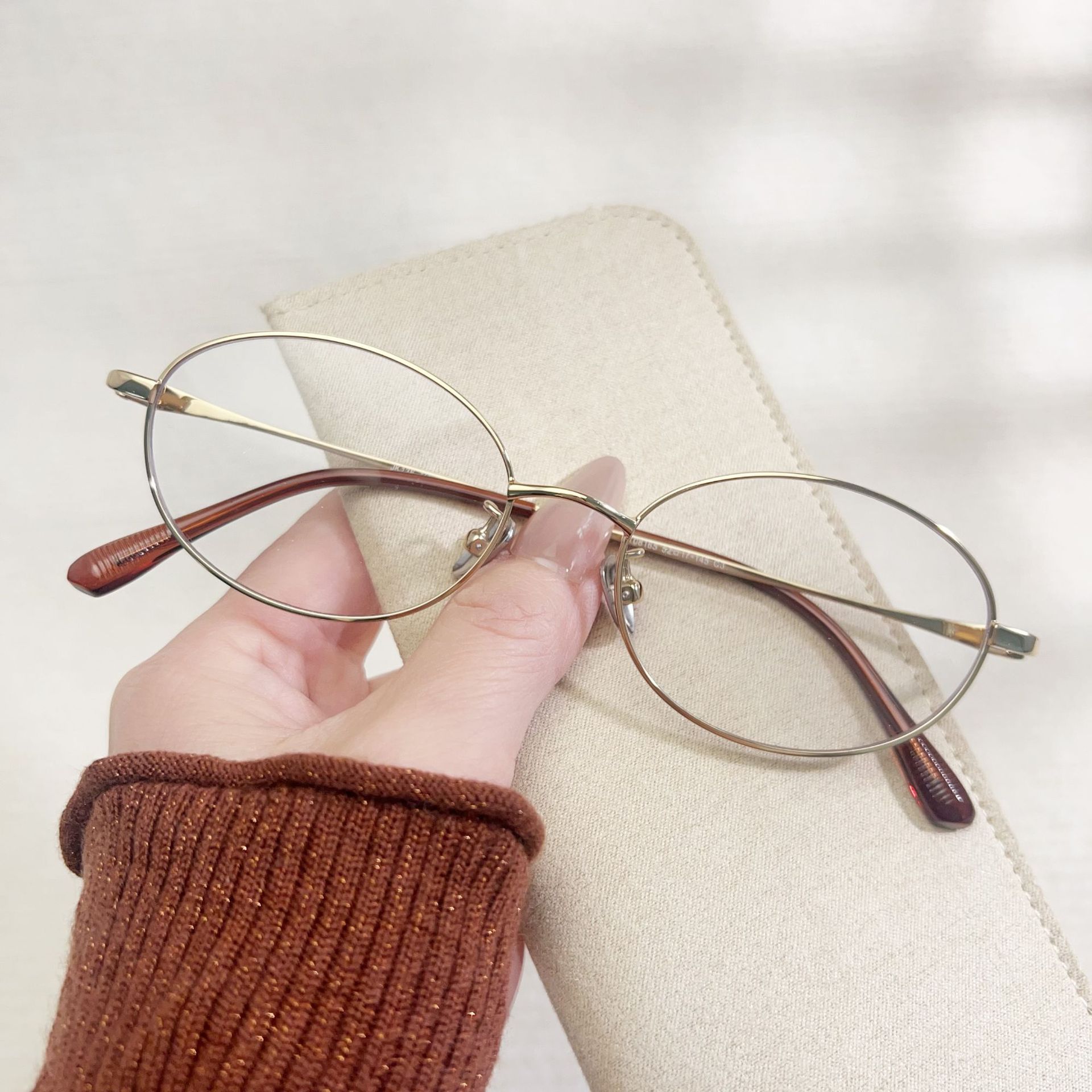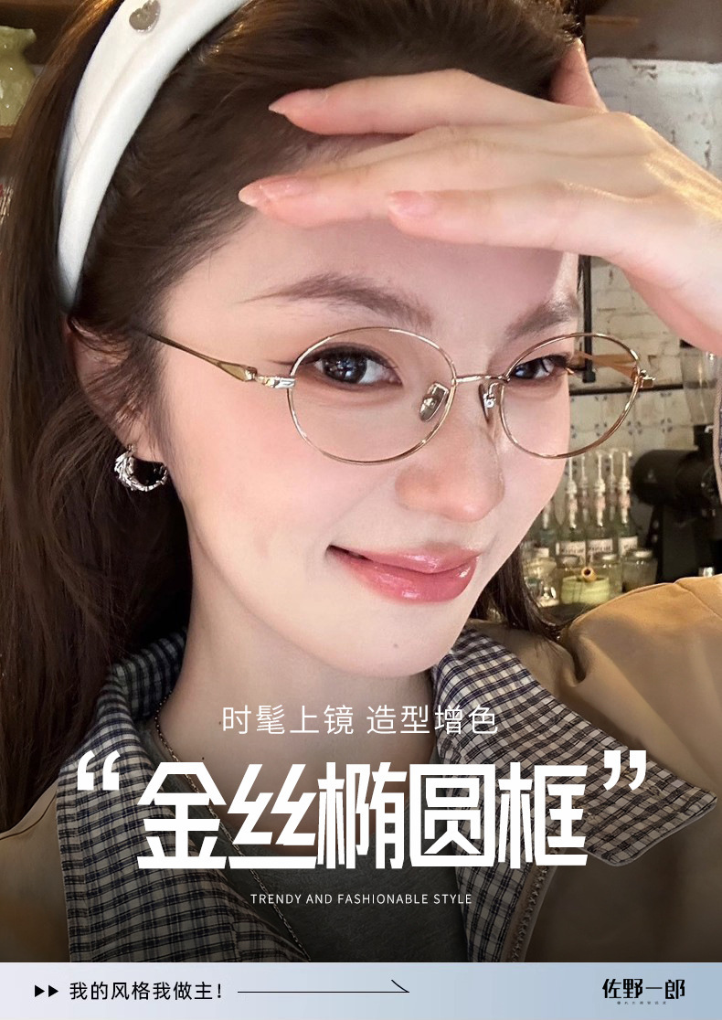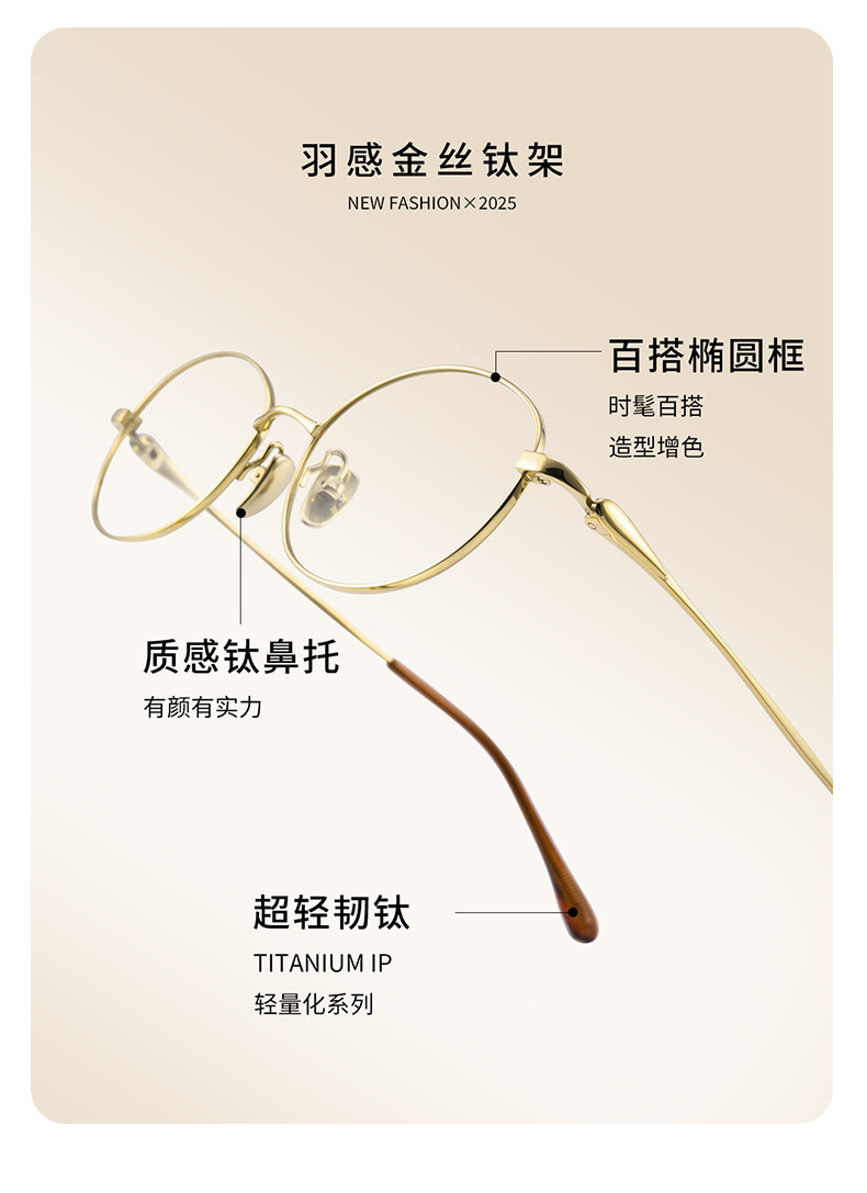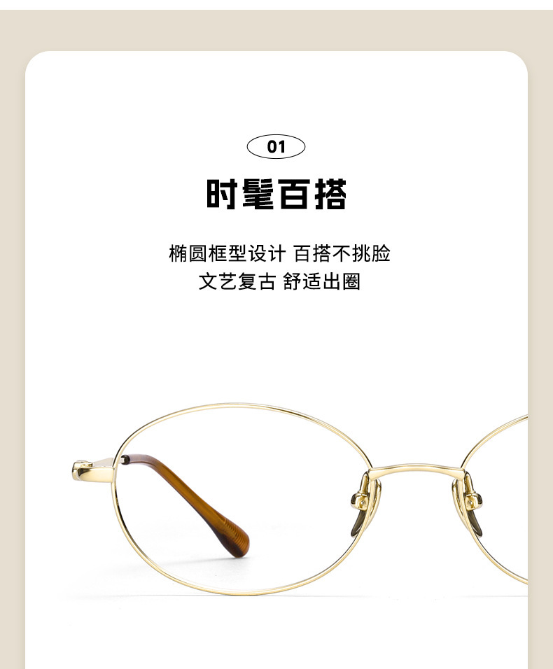 高级老钱风素颜眼镜椭圆平光镜丹阳眼镜工厂店08165纯钛金丝眼镜