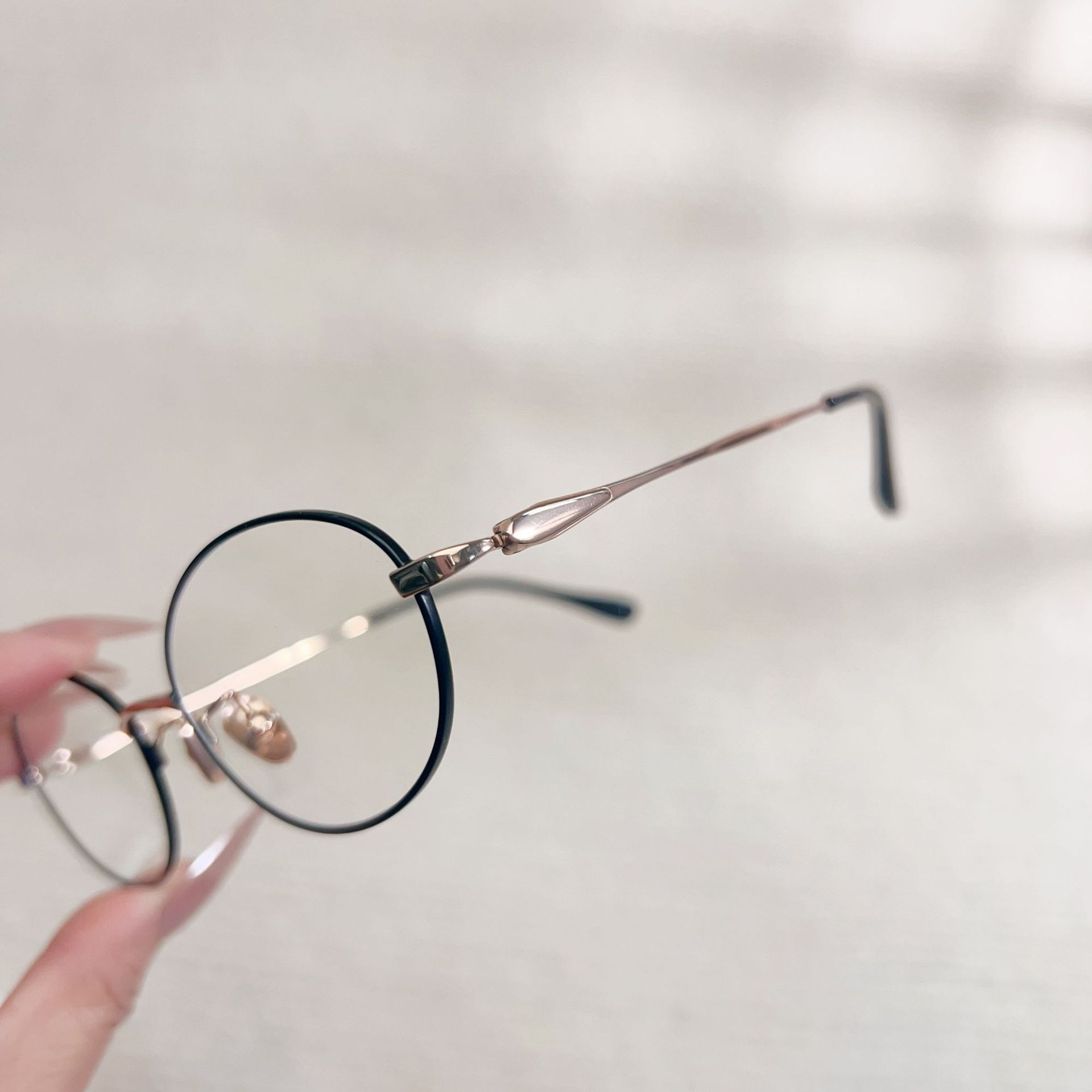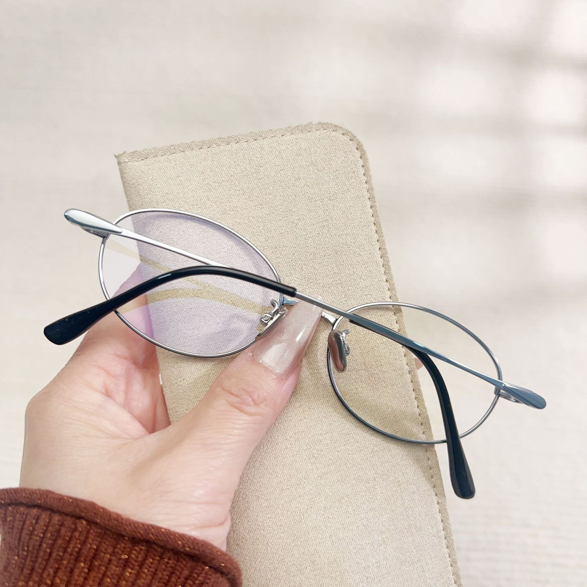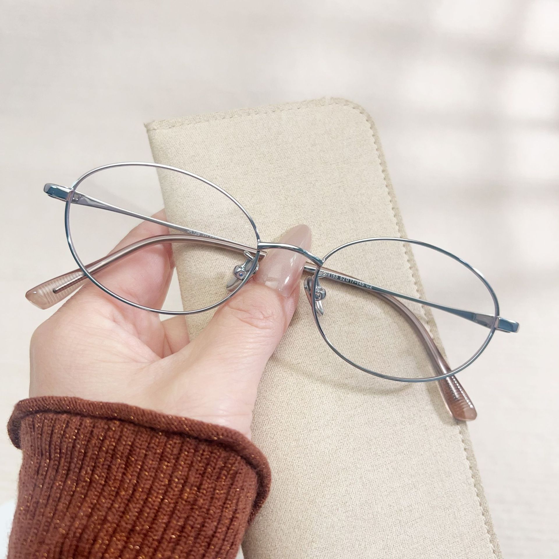 高级老钱风素颜眼镜椭圆平光镜丹阳眼镜工厂店08165纯钛金丝眼镜