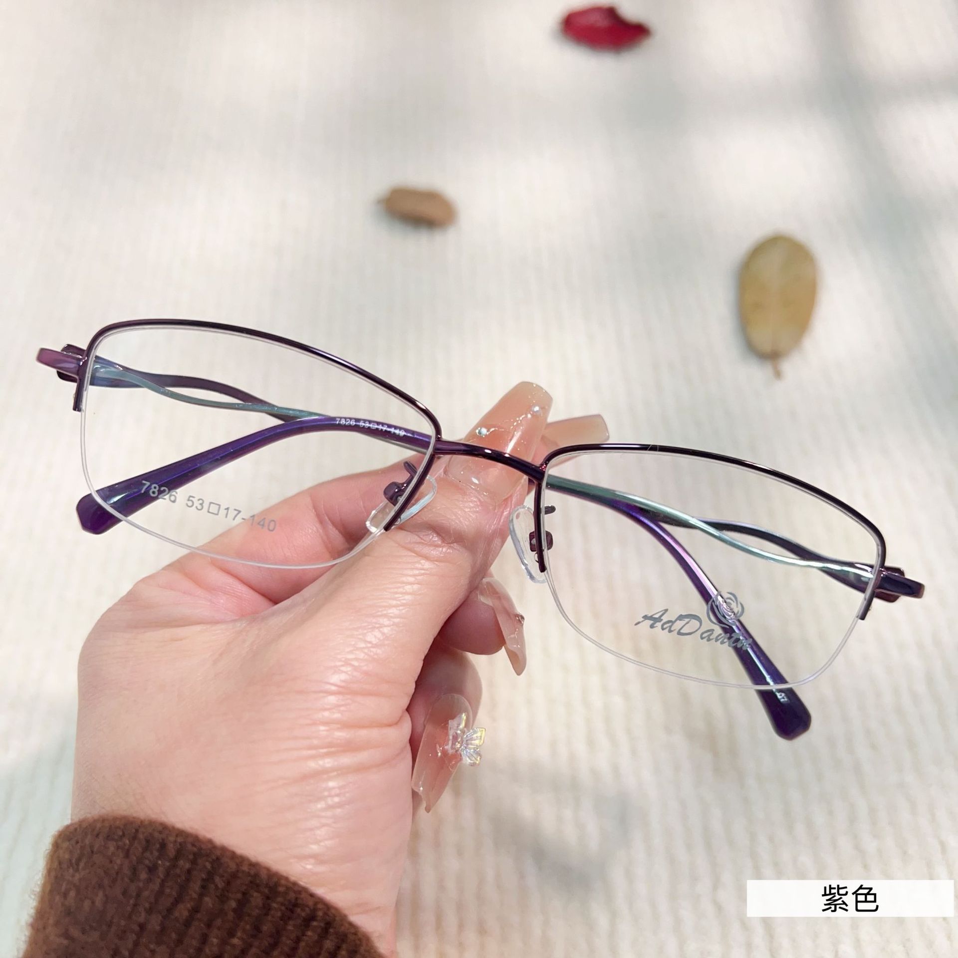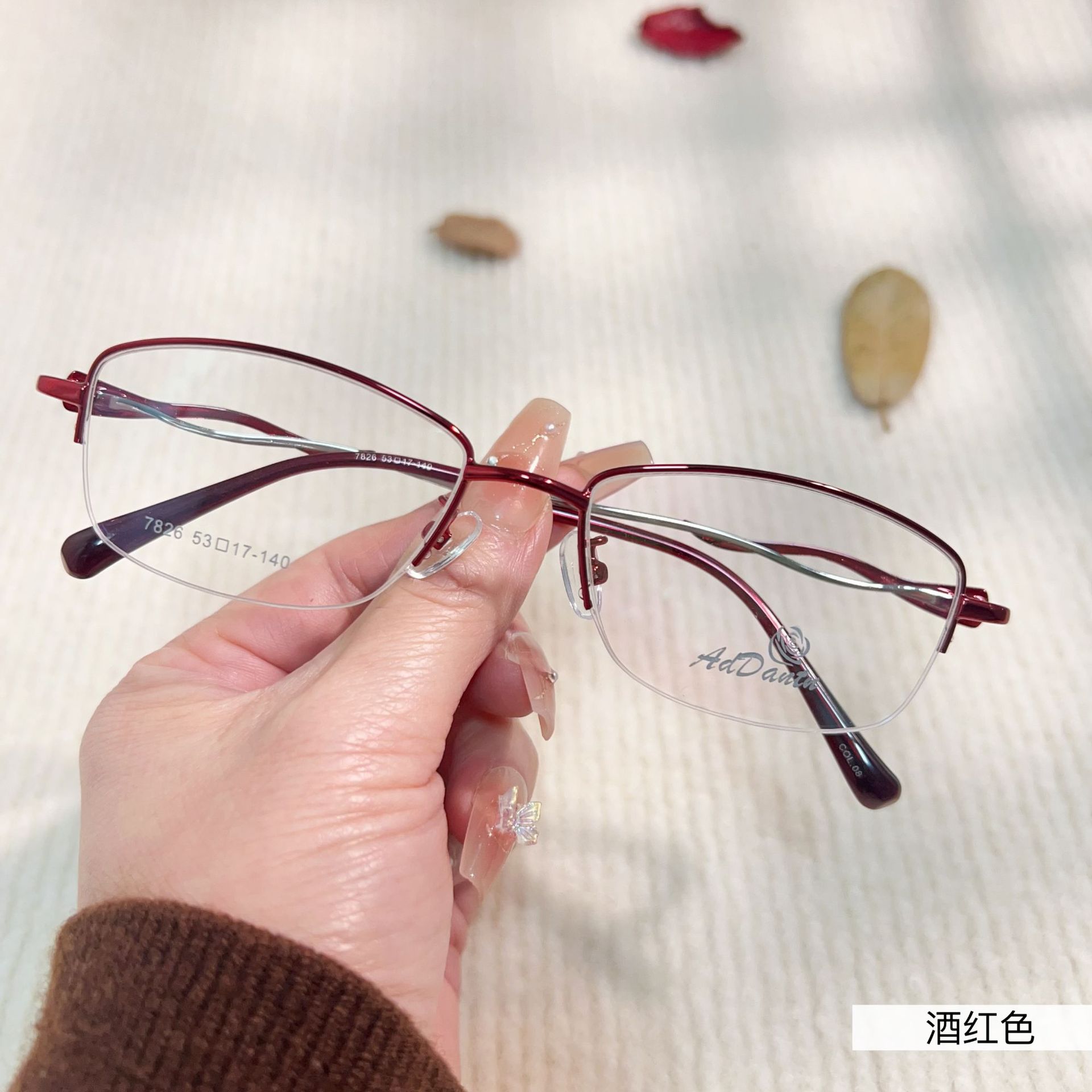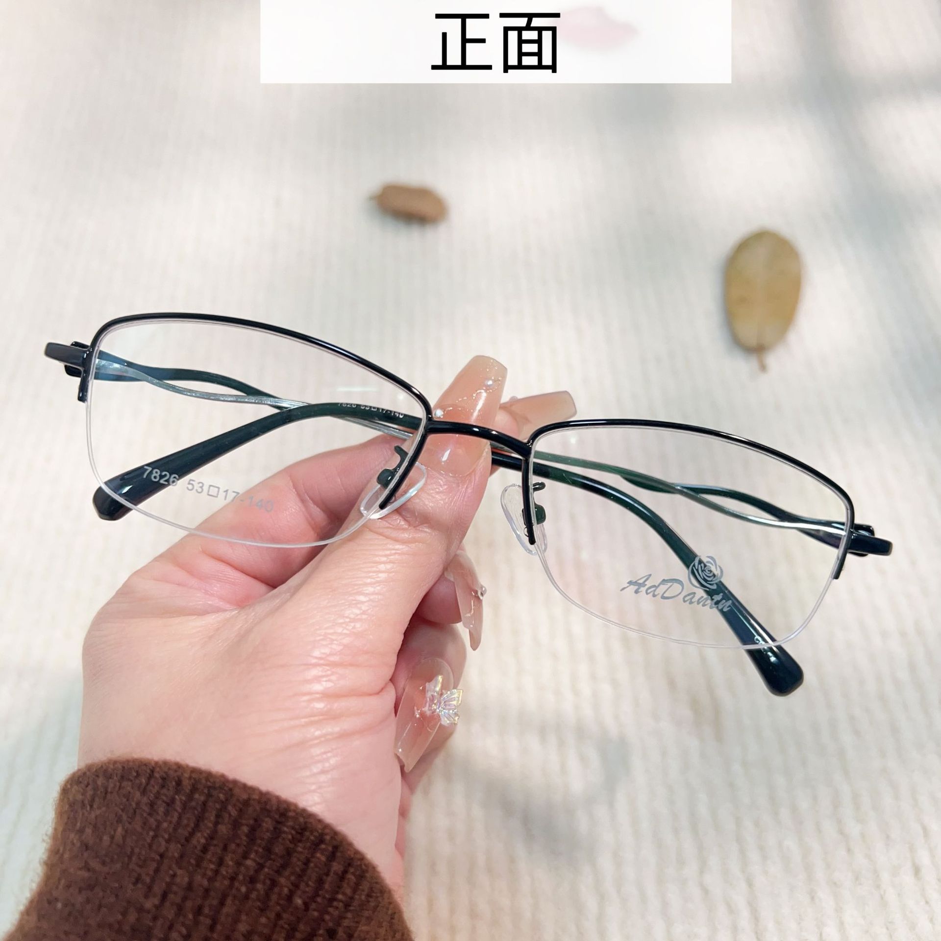 时尚新款眼镜近视女7826丹阳半框双色立体商务可配渐近片镜架