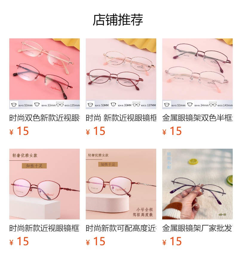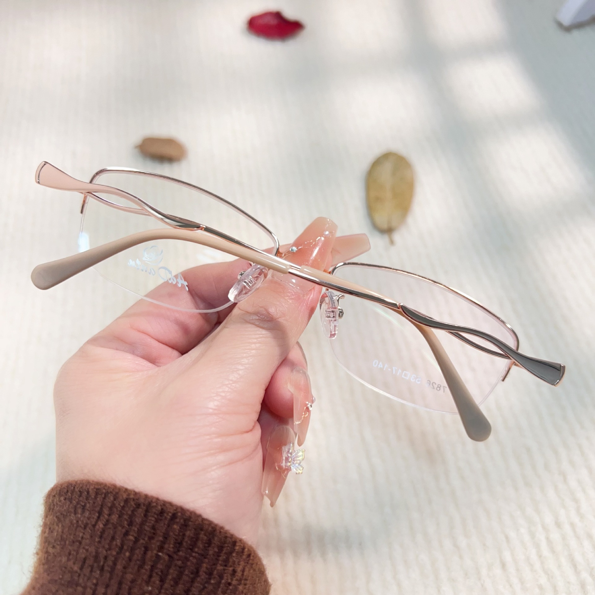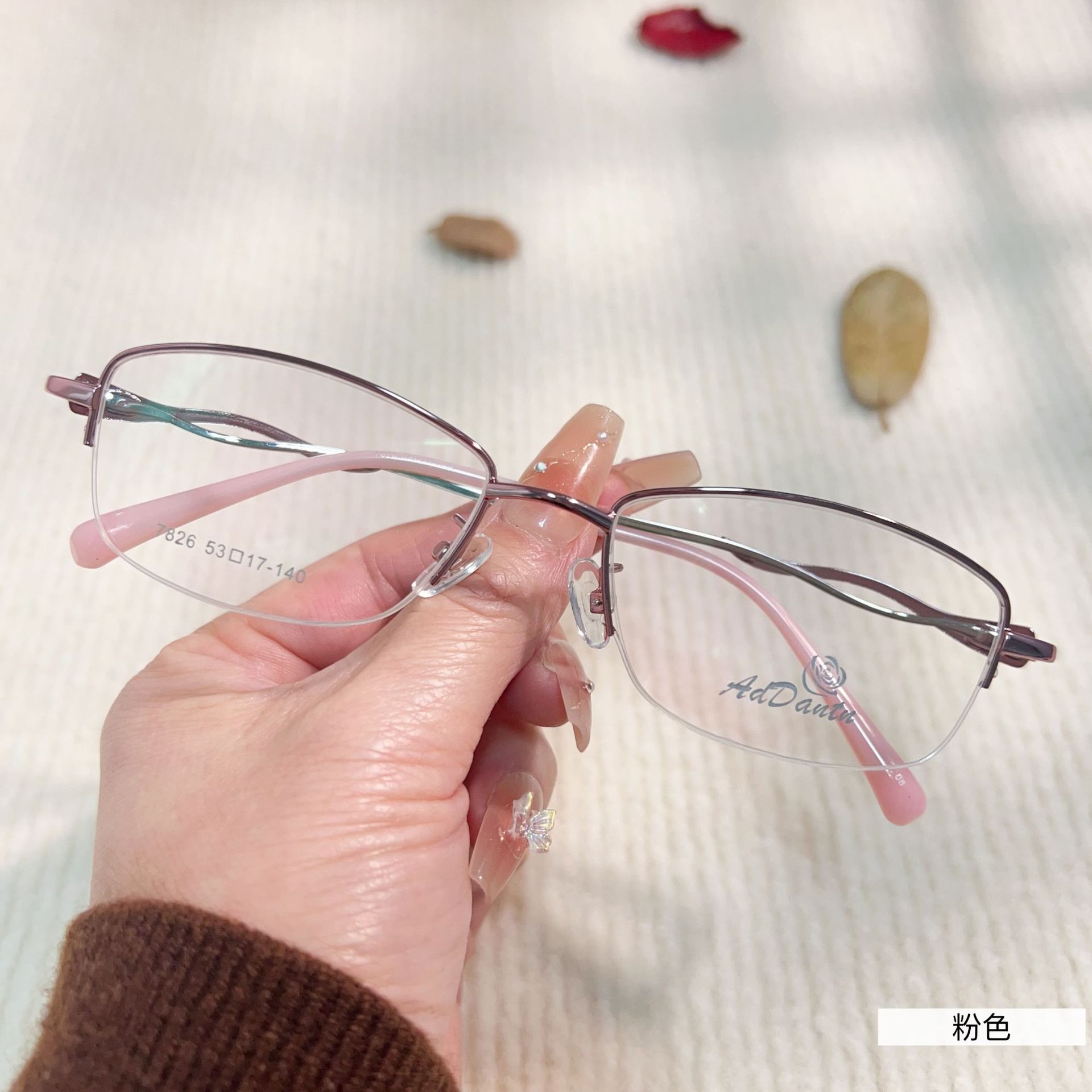 时尚新款眼镜近视女7826丹阳半框双色立体商务可配渐近片镜架