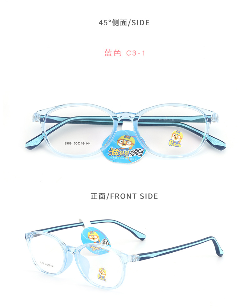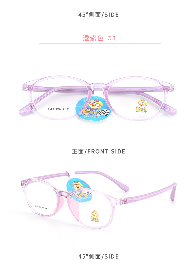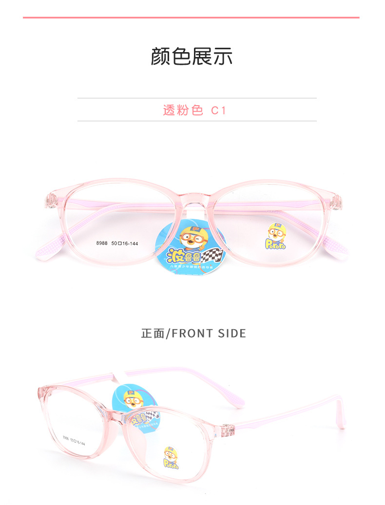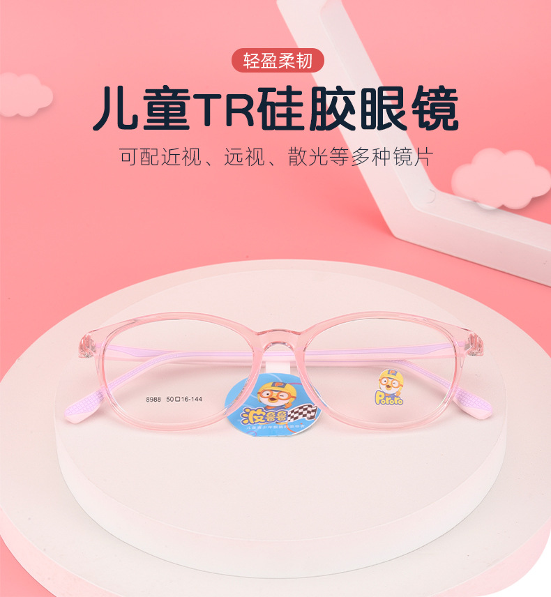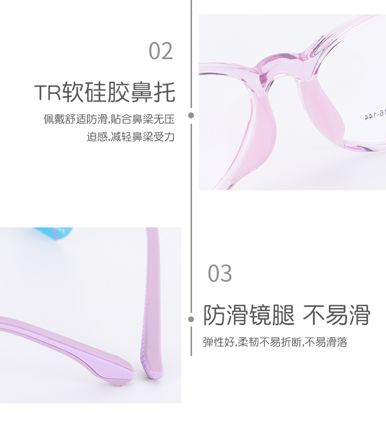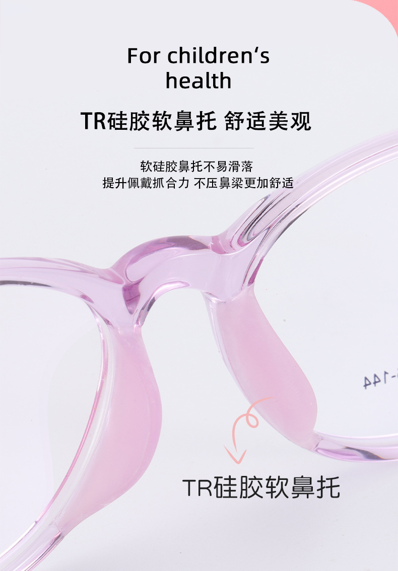 新款TR90学生架近视女硅胶鼻托防脱落男韩版透明色系儿童眼镜框架