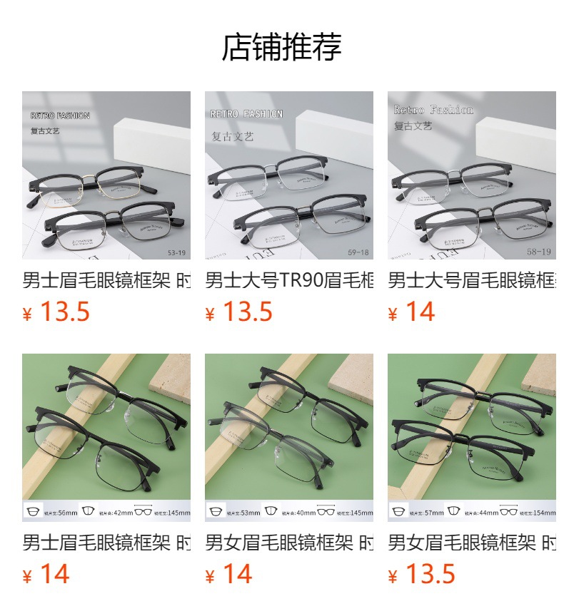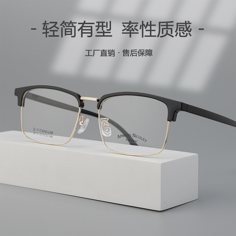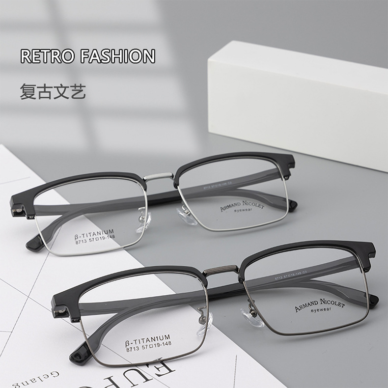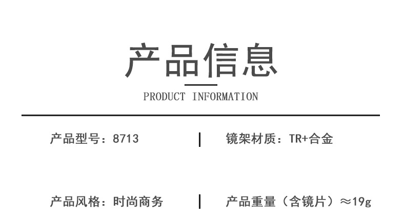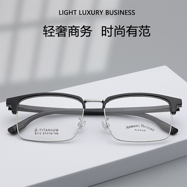 男士眉毛眼镜框架 时尚抖音同款8713TR90眉线大号黑框复古架批发