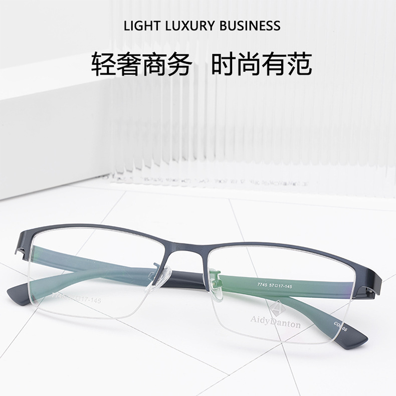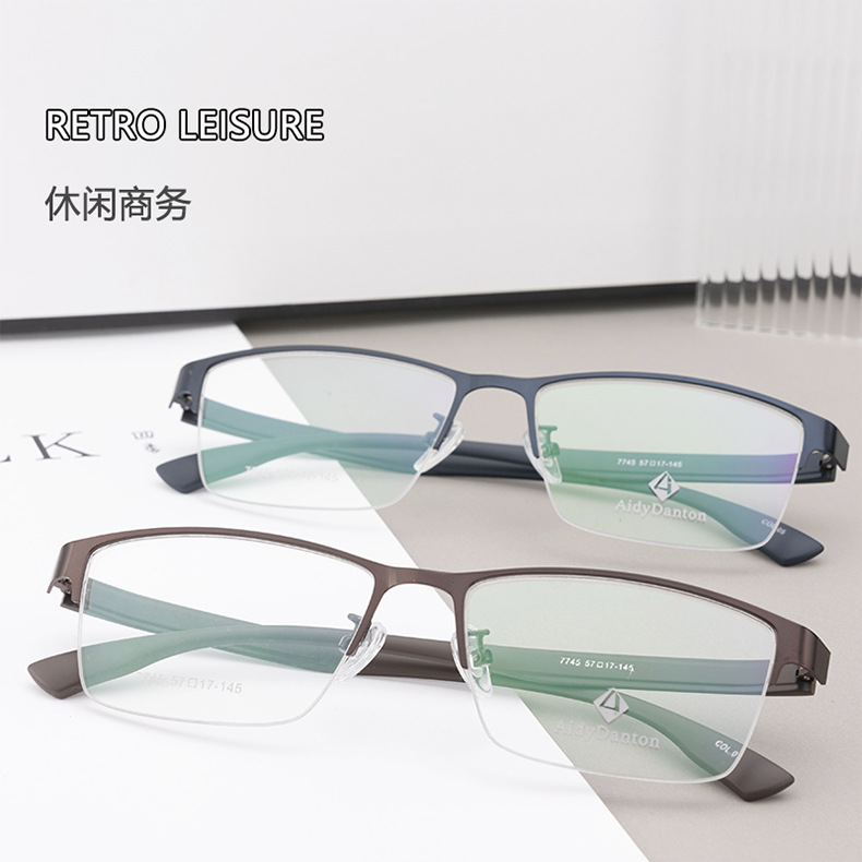 钢板大框眼镜架跨境批发7745男士金属休闲半框架 光学眼镜架丹阳