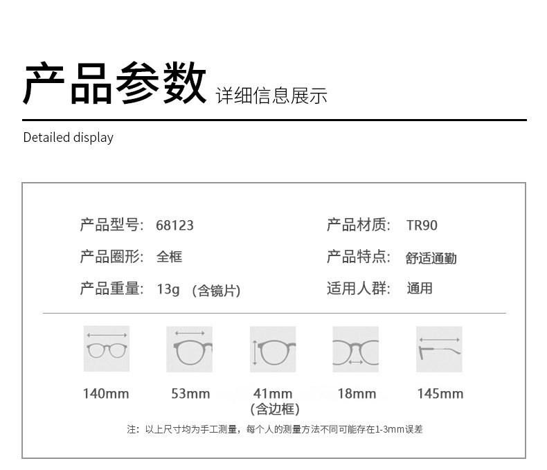 丹阳友顺tr90近视眼镜工厂批发68123男女士全框架眼镜 方形眼镜架
