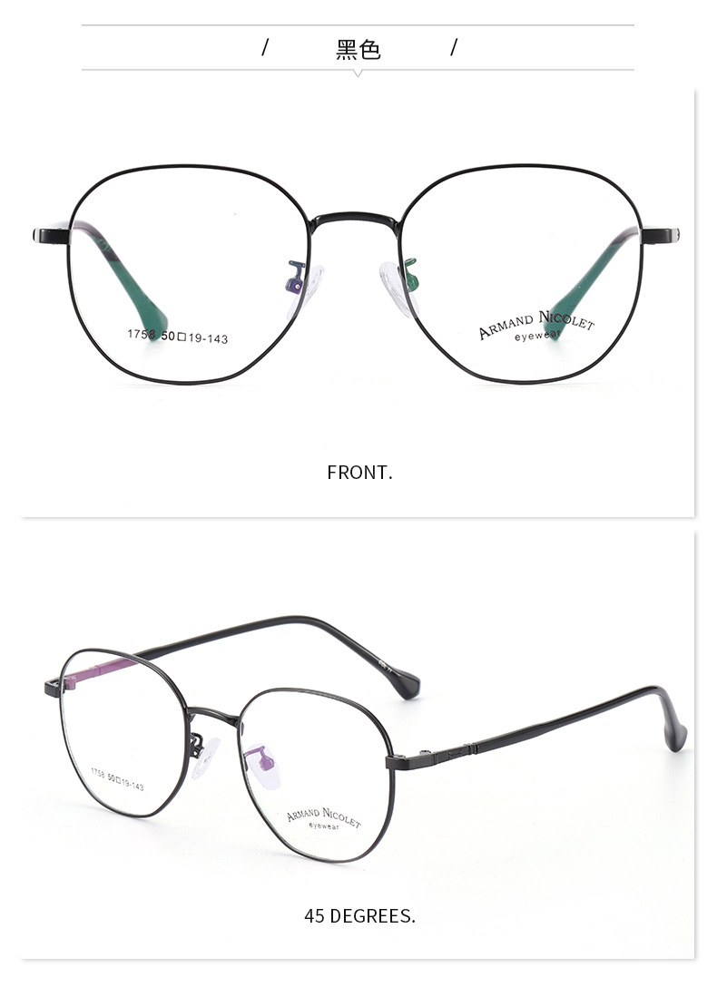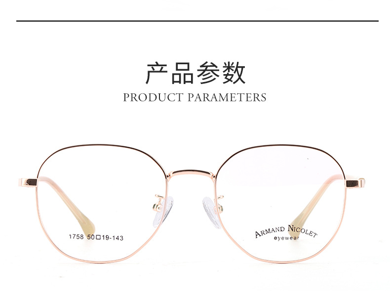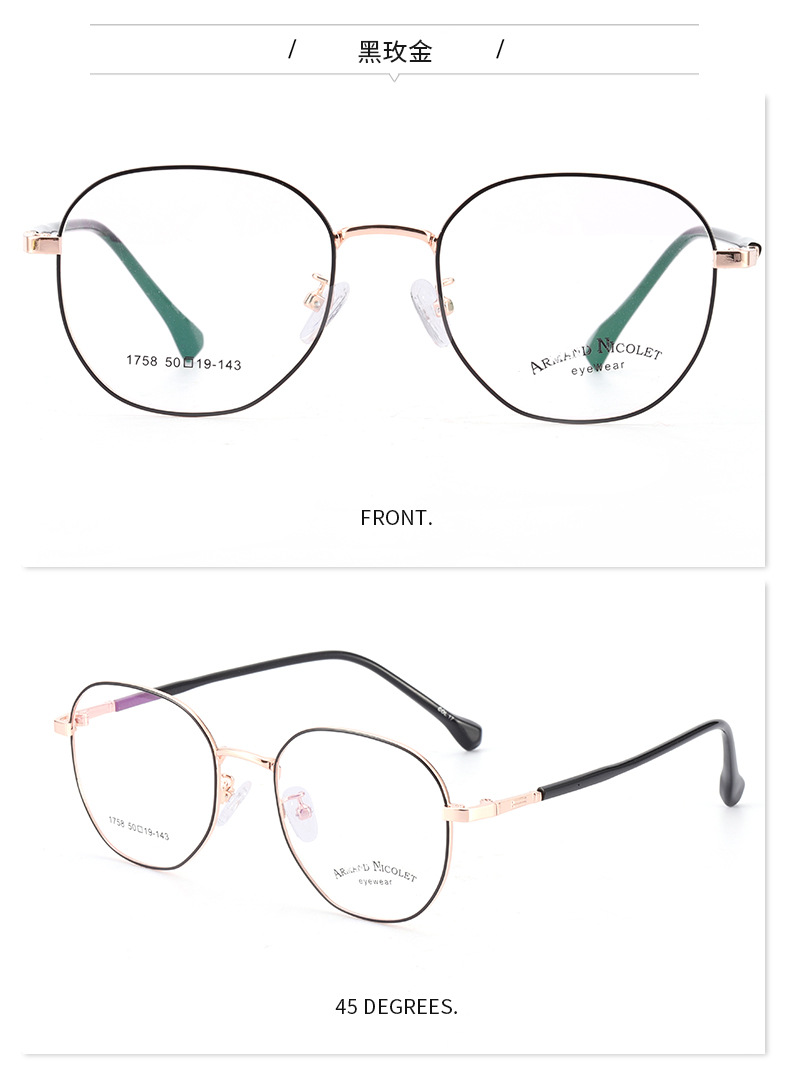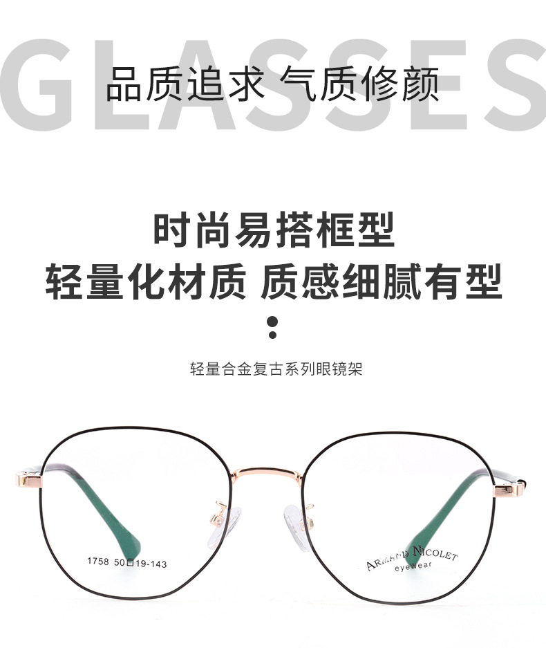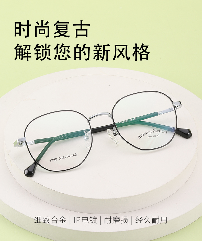 小红书金属复古眼镜多边形有锁块镜架批发1758平光镜男女近视眼镜