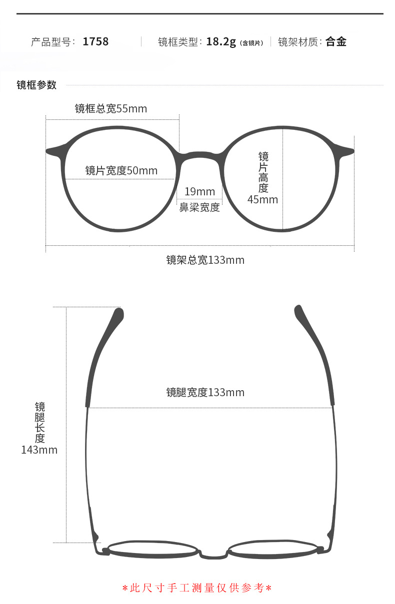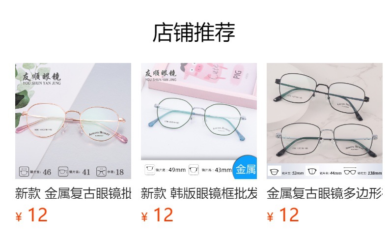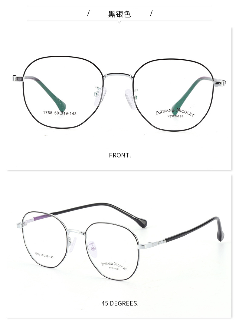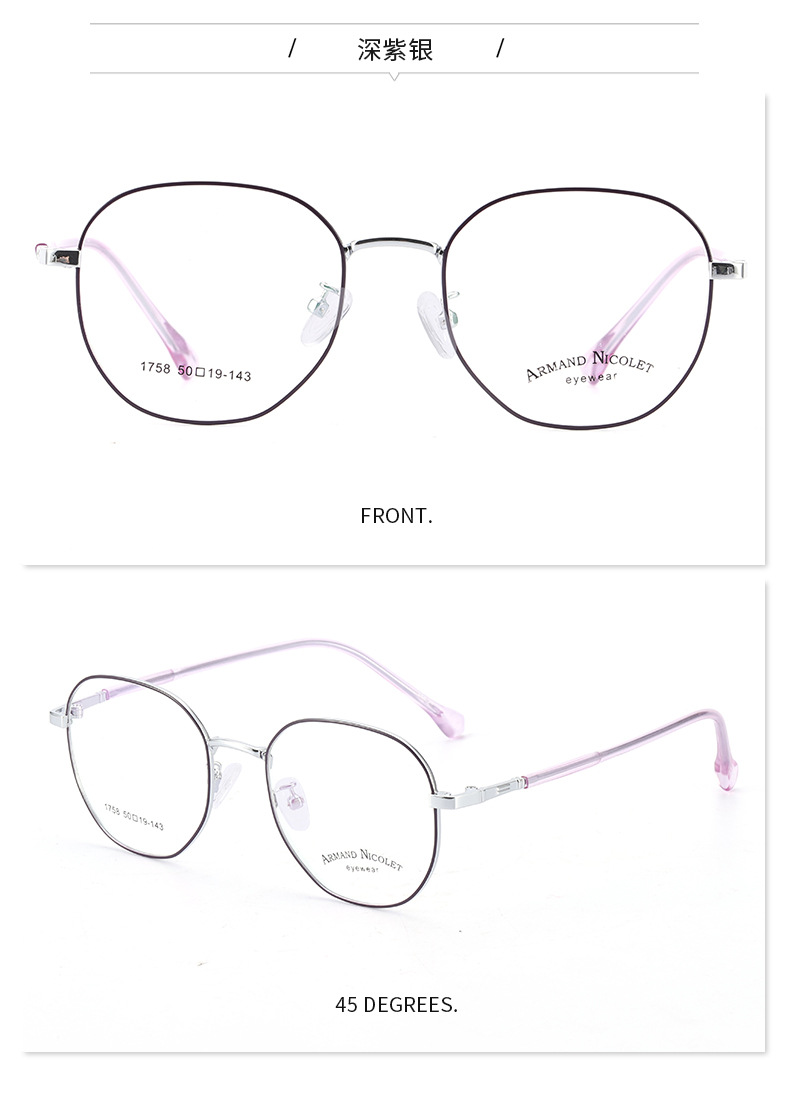 小红书金属复古眼镜多边形有锁块镜架批发1758平光镜男女近视眼镜