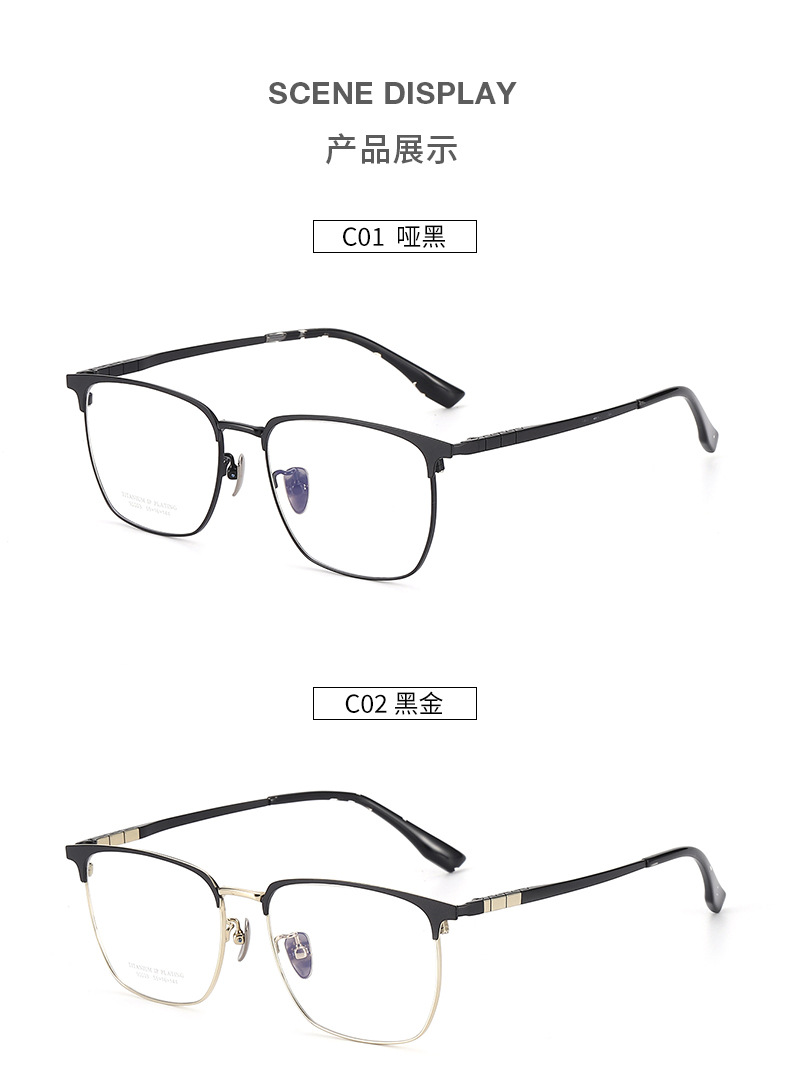 丹阳全框男士眼镜复古近视方框眉毛眼镜90003时尚商务纯钛眼镜框