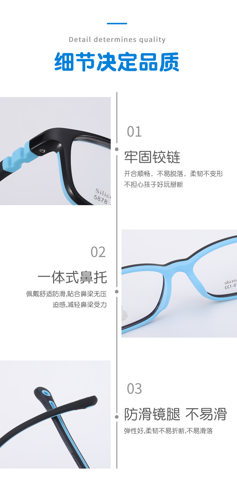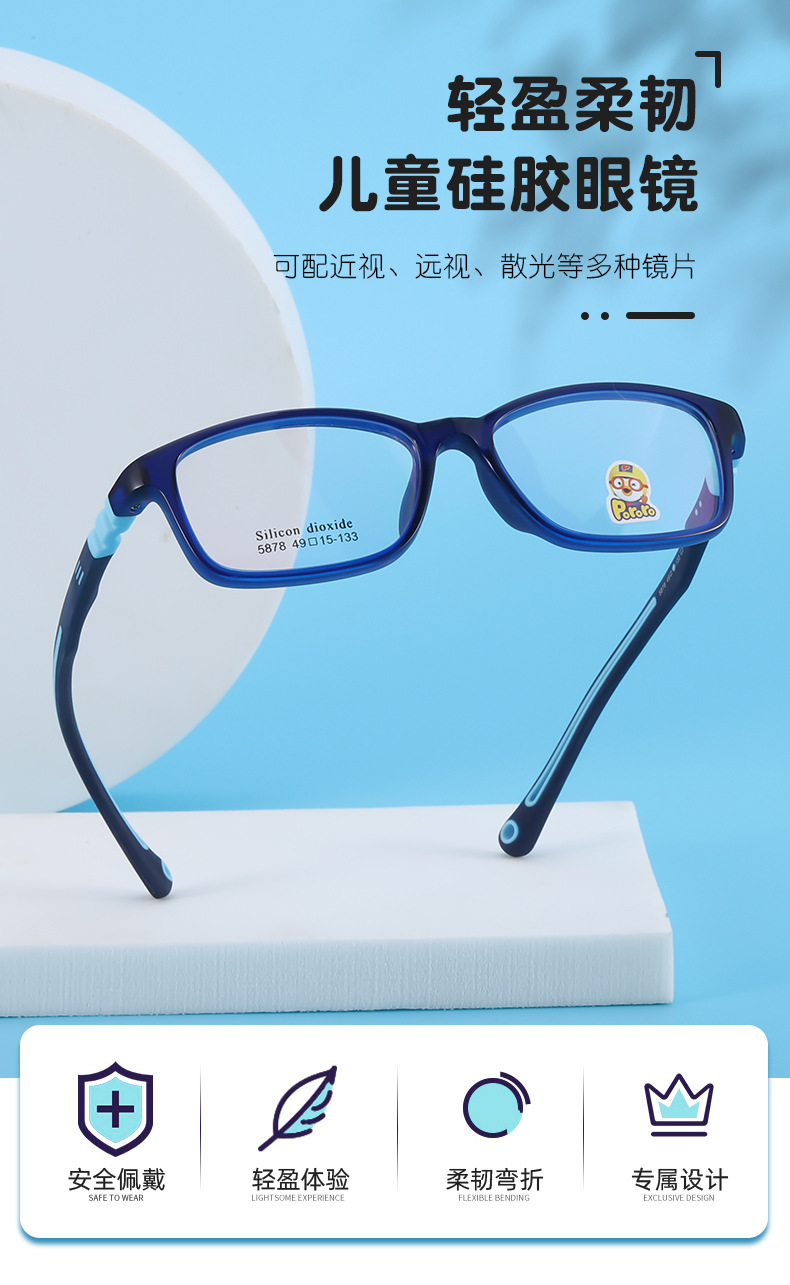全框 网课眼镜框 儿童近视散光矫正眼镜批发5878眼镜框 软硅胶