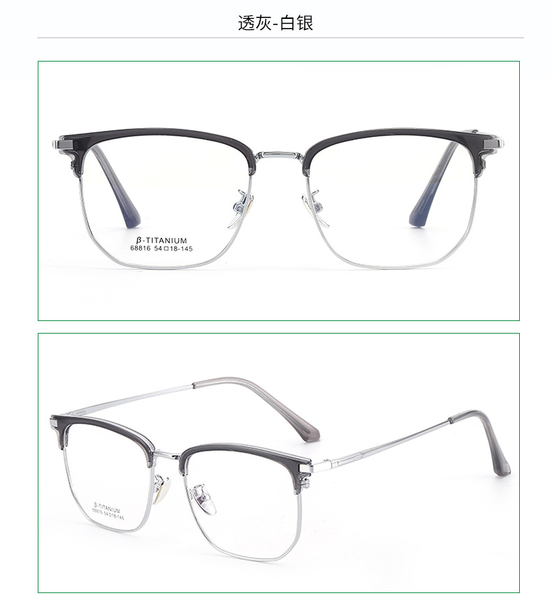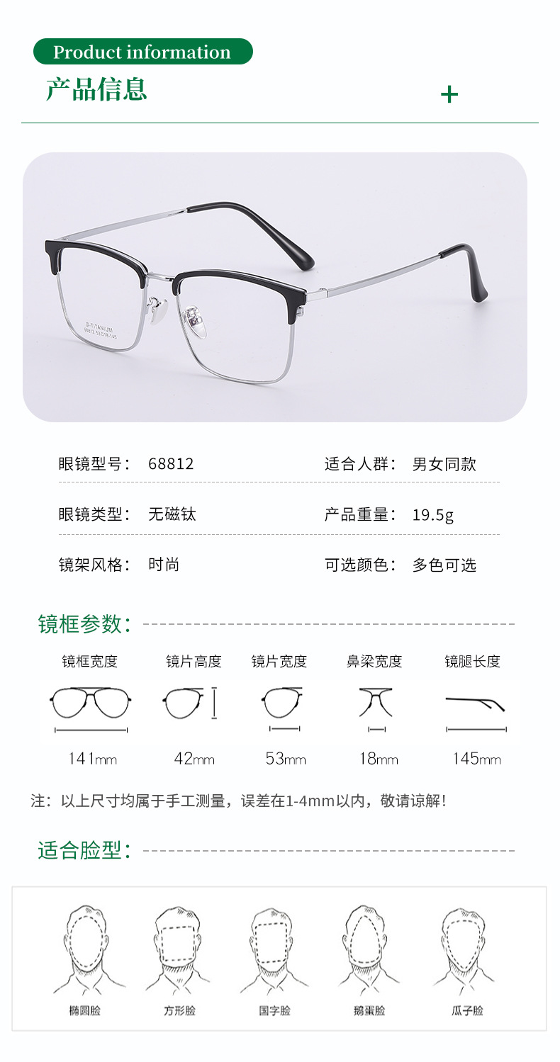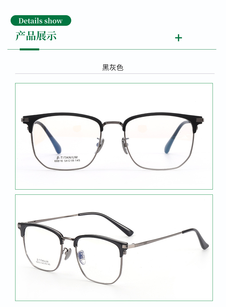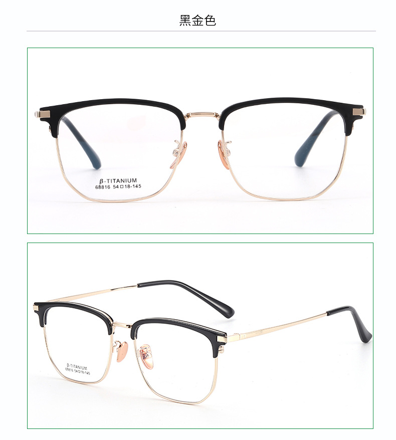 新款钛合金复古平光镜 时尚多边形眉线架68816无磁钛眉毛眼镜框