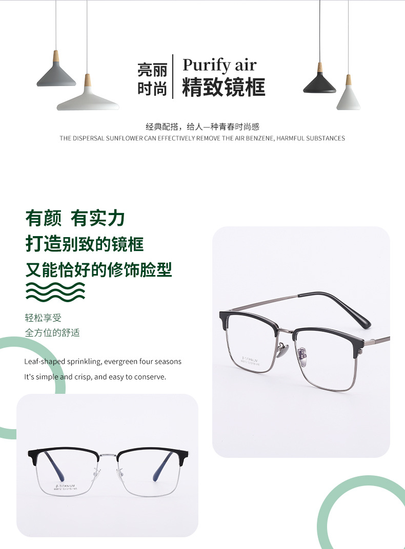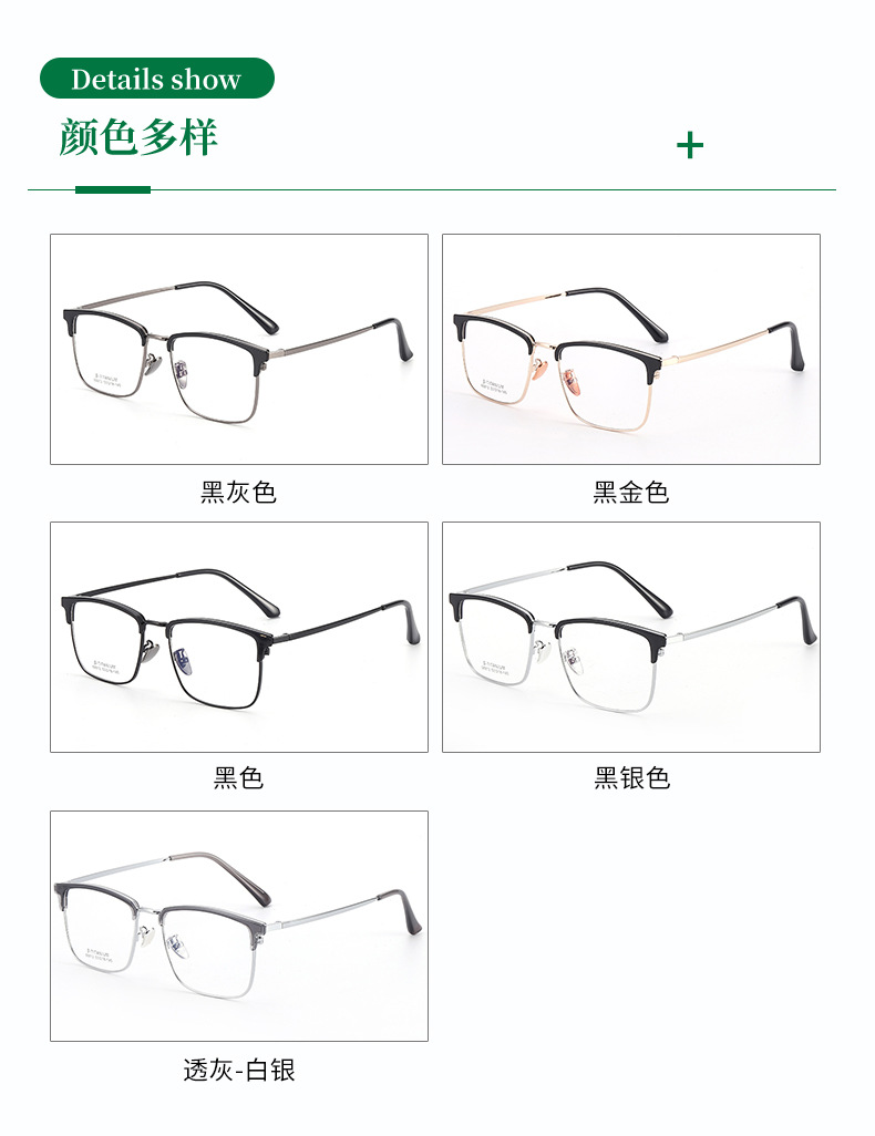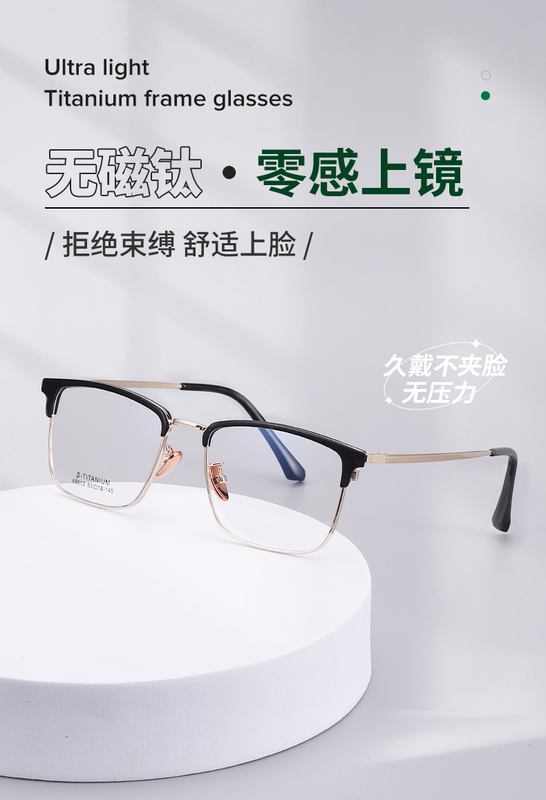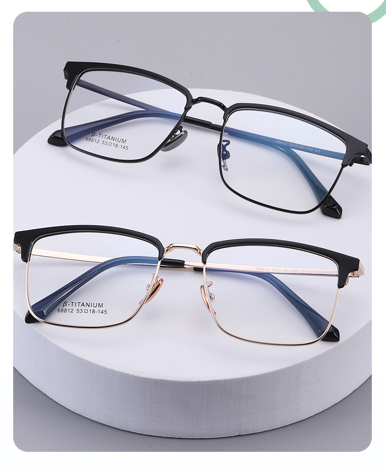 新款钛合金复古平光镜 时尚多边形眉线架68816无磁钛眉毛眼镜框